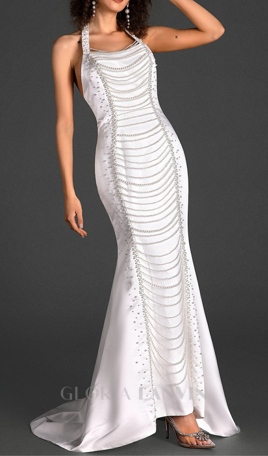 ROBE SIRÈNE LISSE EN SATIN PERLE