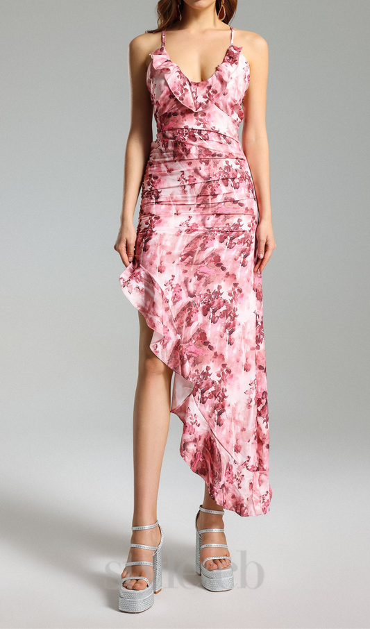 ROBE FLORALE À ÉPAULE DÉNUDÉE