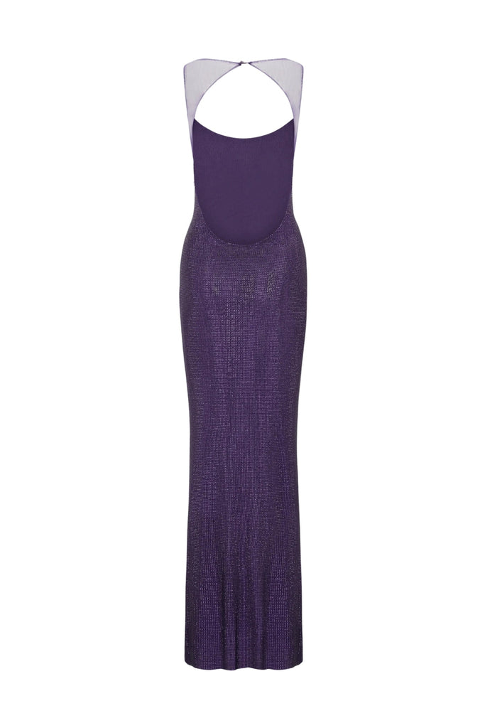 Robe longue dos nu en résille à sequins - Violet – Gloria Lanvin
