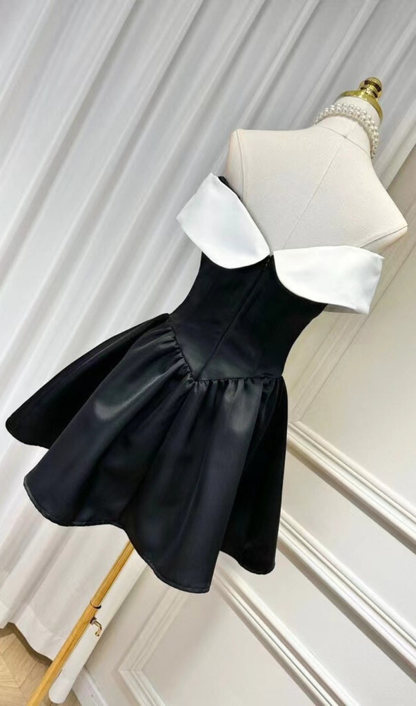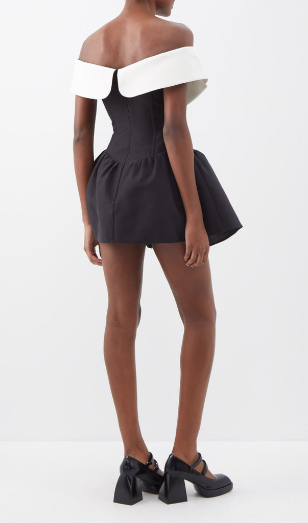 Adoptez notre " Evelyn" affiche une féminité sans faille avec cette mini-robe noire, confectionnée dans un mélange de coton lisse, avec une encolure à épaules dénudées et une taille froncée. Le grand décolleté blanc avec de délicats boutons à nœuds est à la fois amincissant et blanc, ainsi que capricieux. Le simple palette de couleurs et coupe, les lignes simples apportent une sensation de propreté et de fraîcheur, donnant un impact visuel élégant, et avec une robe noire, toute la personne devient calme et nette.