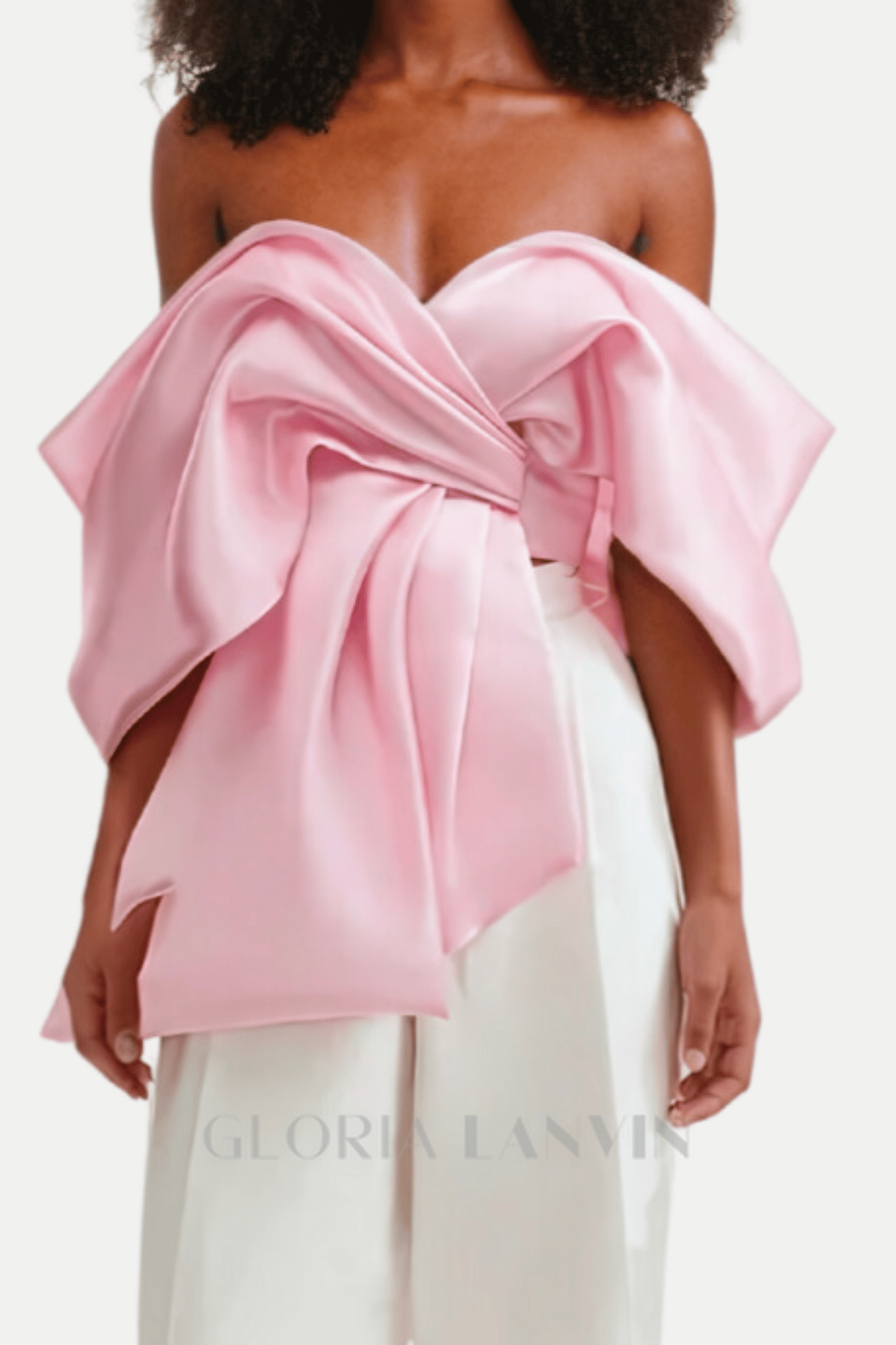 Osez l'originalité et démarquez-vous avec le top Samira à épaules dénudées et nœud croisé en satin. Son style chic et sa matière satinée vous donneront une allure audacieuse et assurée. Grâce à son nœud unique, vous serez prête à relever tous les défis avec style. Laissez briller votre esprit aventurier !