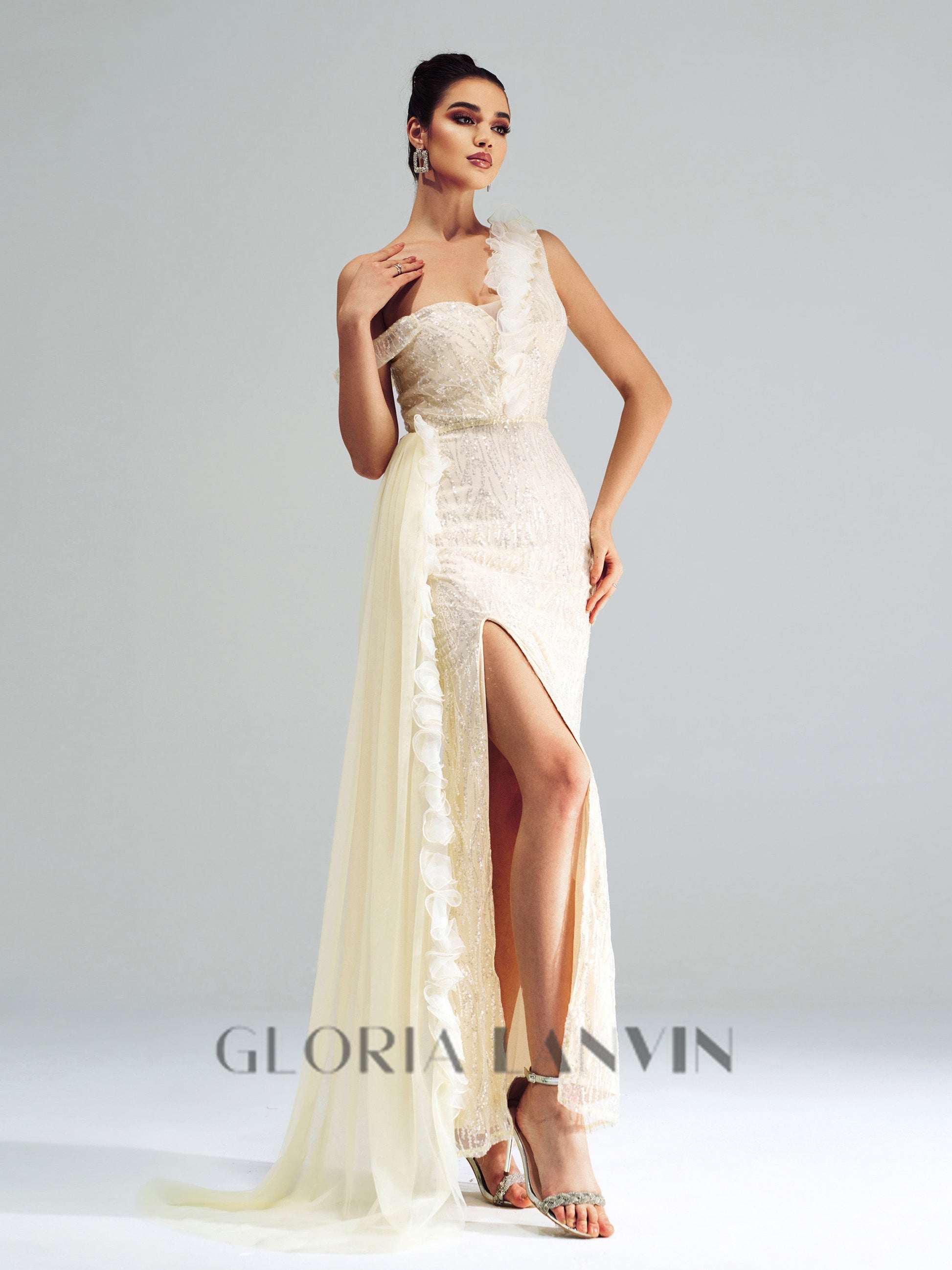 Robe maxi fendue à fines bretelles et application florale