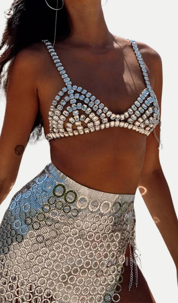 Offrez-vous un moment de luxe avec notre soutien-gorge Cael Crystal argenté. Orné de cristaux étincelants, ce soutien-gorge à chaînes respire la sophistication et l'exclusivité. Sublimez votre collection de lingerie avec cette pièce élégante qui allie mode et sensualité. Idéal pour ajouter une touche de glamour à votre garde-robe intime.