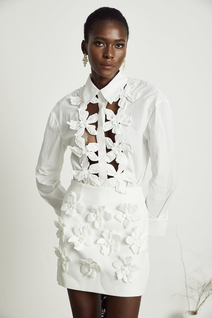 Chemise Rosalie à découpes et ornements floraux 3D – Gloria Lanvin