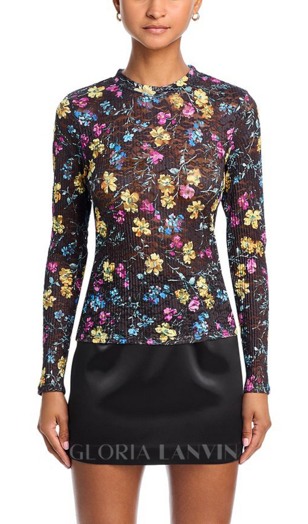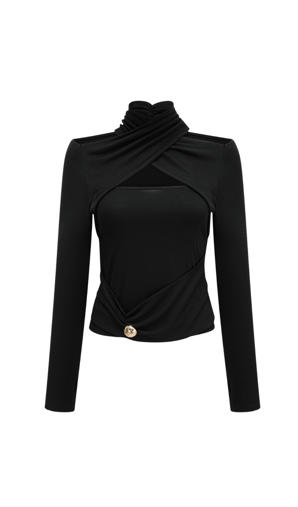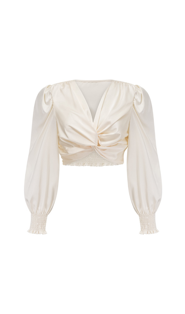 Ensemble Clémence composé d'un haut plissé semi-transparent et d'une jupe assortie