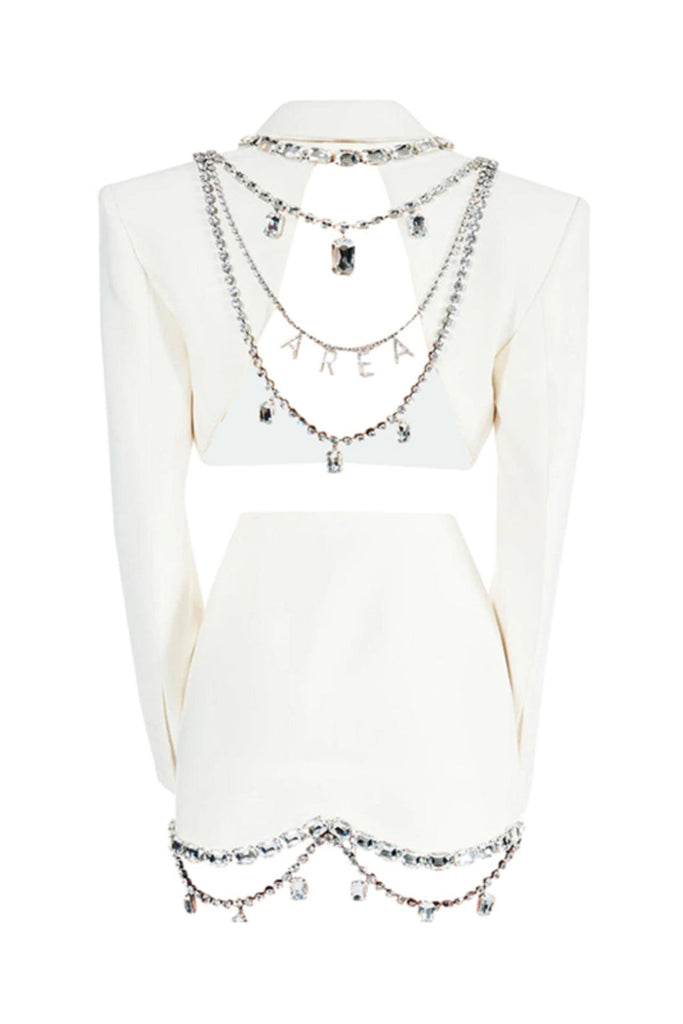 Ensemble boléro et robe Liliane blanc à appliqués floraux