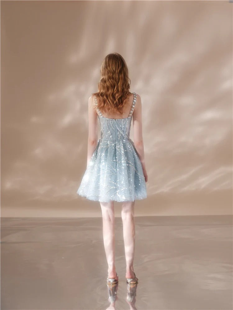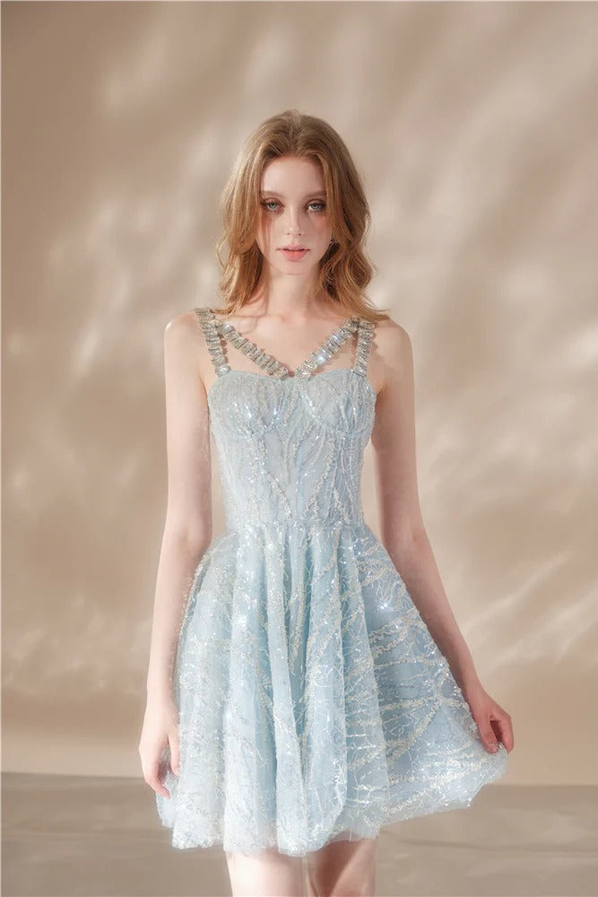 Éblouissez la pièce avec la robe bleue à bretelles strass, une création exclusive de CB. Cette mini-robe en satin attire tous les regards grâce à ses bretelles strassées et son ourlet orné de strass scintillants. Sa coupe ajustée met en valeur votre silhouette. Un look cocktail glamour pour votre prochaine soirée !