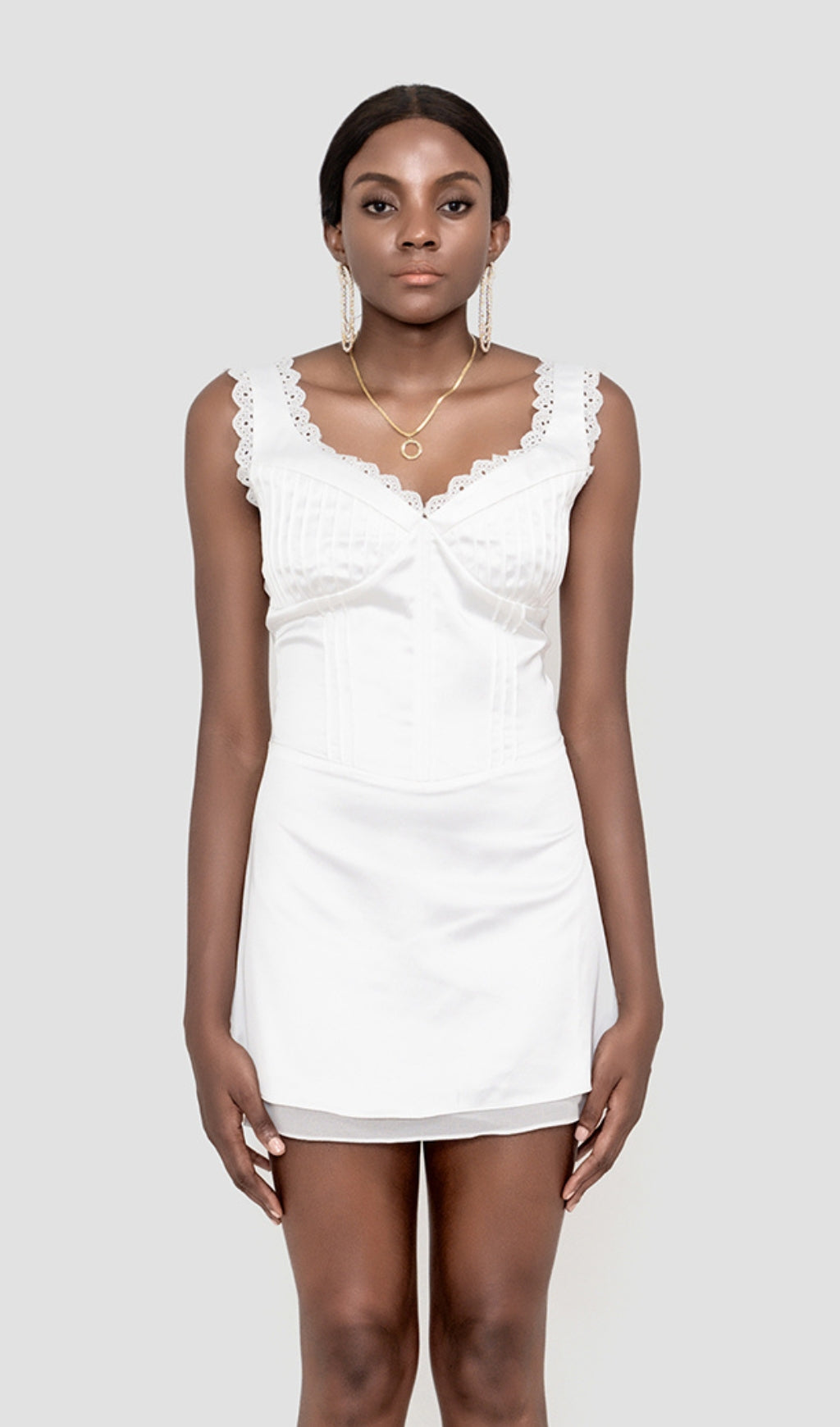 This white pin tuck mini dress is made of pure cotton for a comfortable fit. The cut is designed to hug curves and give an elegant, sophisticated look. The small details create a unique, eye-catching design.