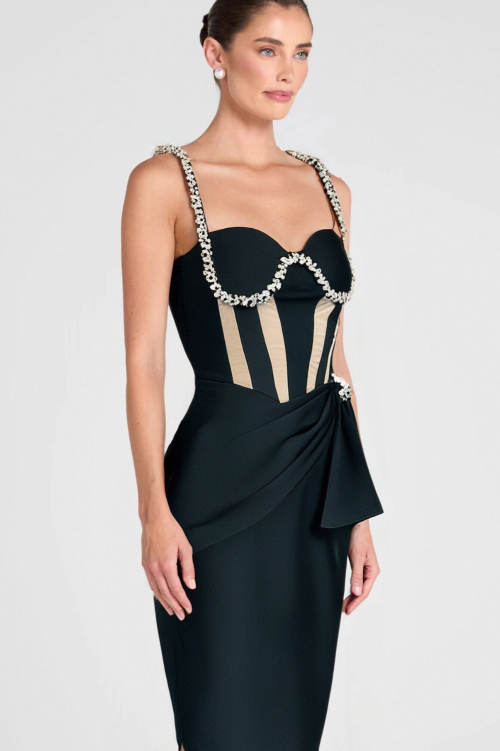 Be daring in this Crystal Mermaid Bandage Dress, crafted with sparkly crystals that will have you feeling bold and glamorous. Dare to shine and make a statement in this eye-catching dress!