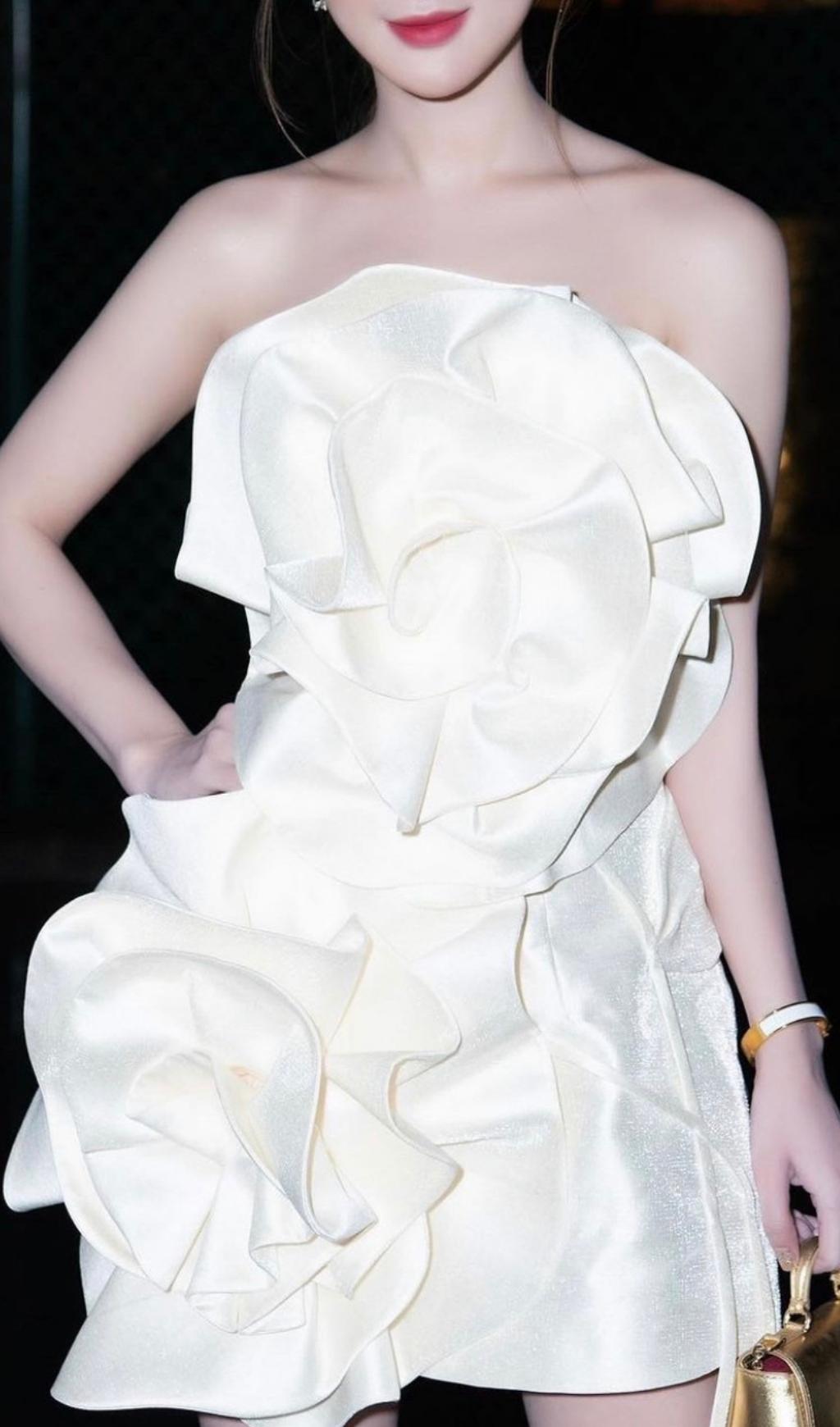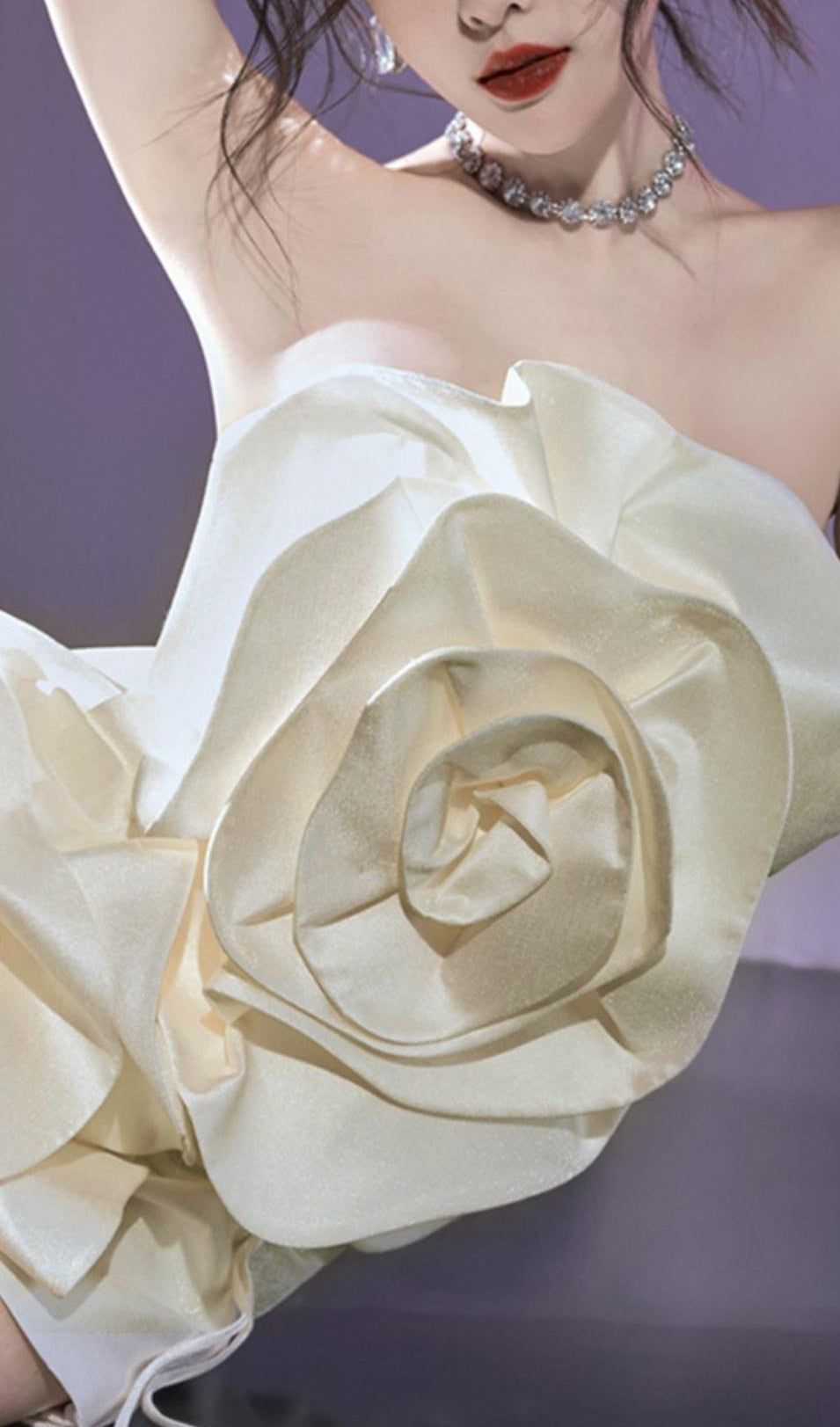 This dress is beautifully designed for summer-time. The solid large flowers create a natural bulge. We love that it is very dreamy and shows off your curves. Perfect for a garden party girl.