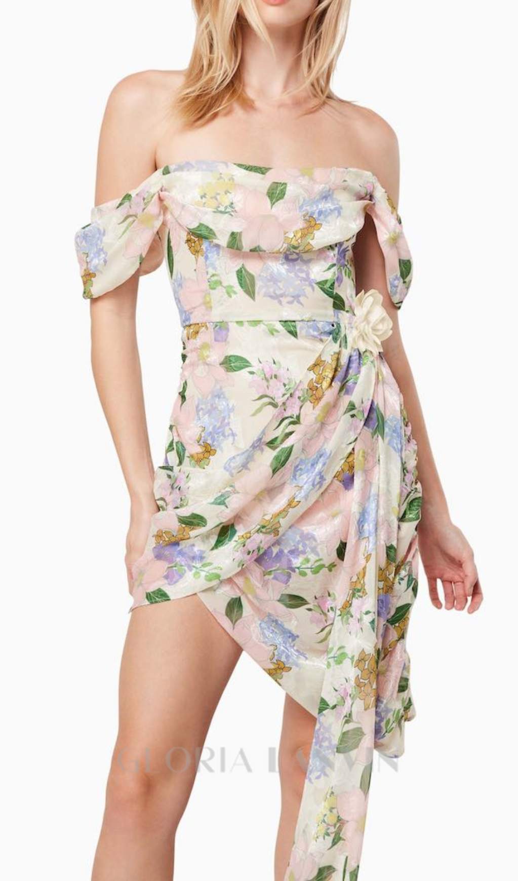Adorned with a stunning floral print, this dress exudes elegance and charm. The flowy silhouette and soft fabric offer all-day comfort and style. Perfect for a garden party or a romantic date, this dress will surely turn heads. Elevate your wardrobe with this must-have piece!
