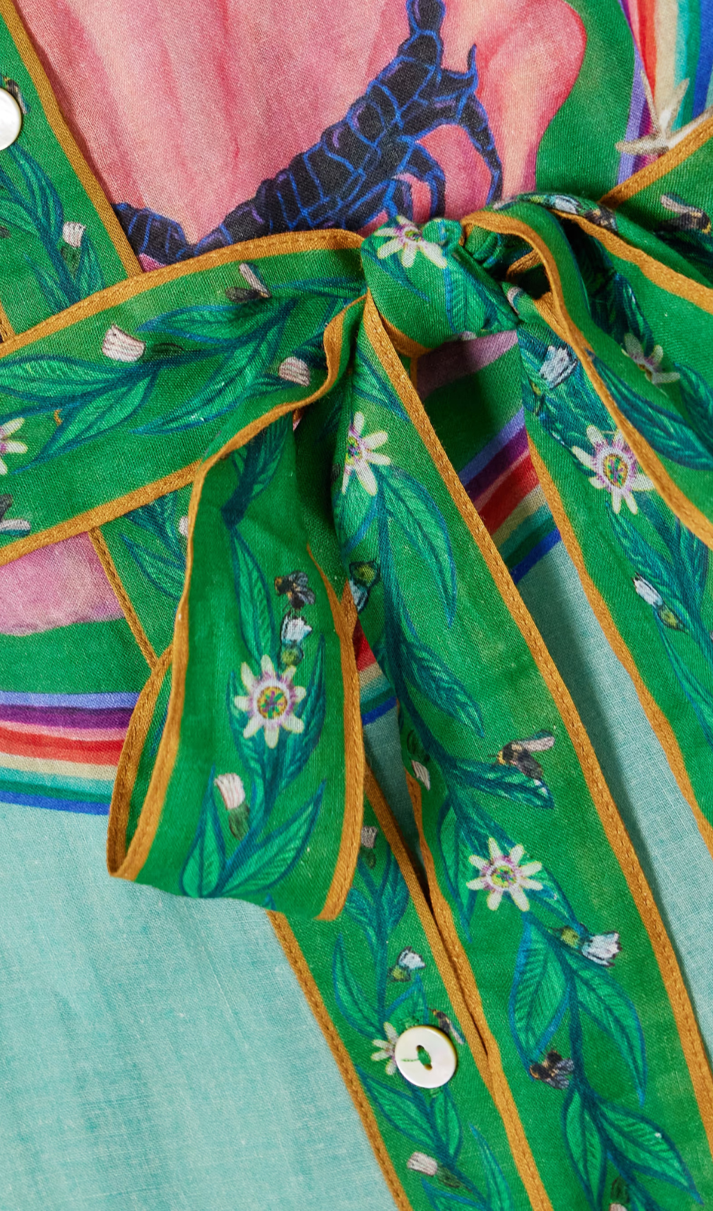 Made with ramie fabric, it offers a lightweight and breathable option for warmer weather. With a flattering belted waist and chic print, this dress is perfect for any occasion and will make you stand out in the best way.