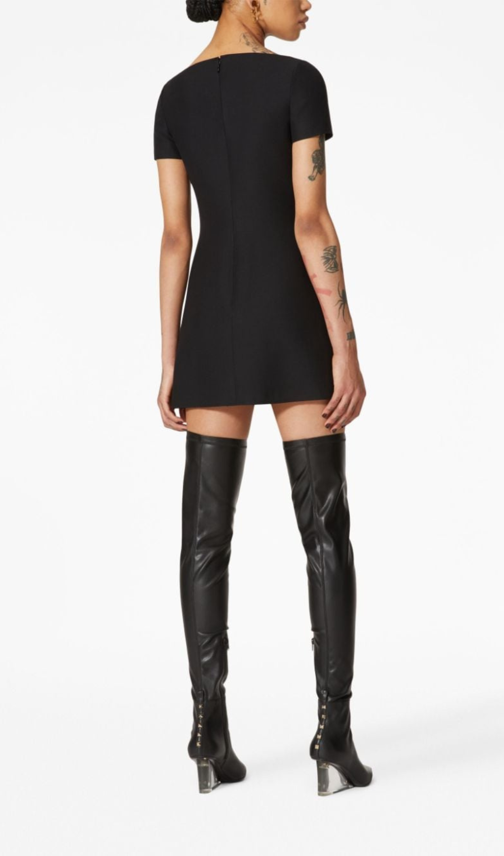 This stately dress exudes elegance, luxury, and poise. Delicately crafted with intricate patchwork and graceful bows, this dress is sure to make a chic statement at any event. Be the belle of the ball and flaunt your sophistication.