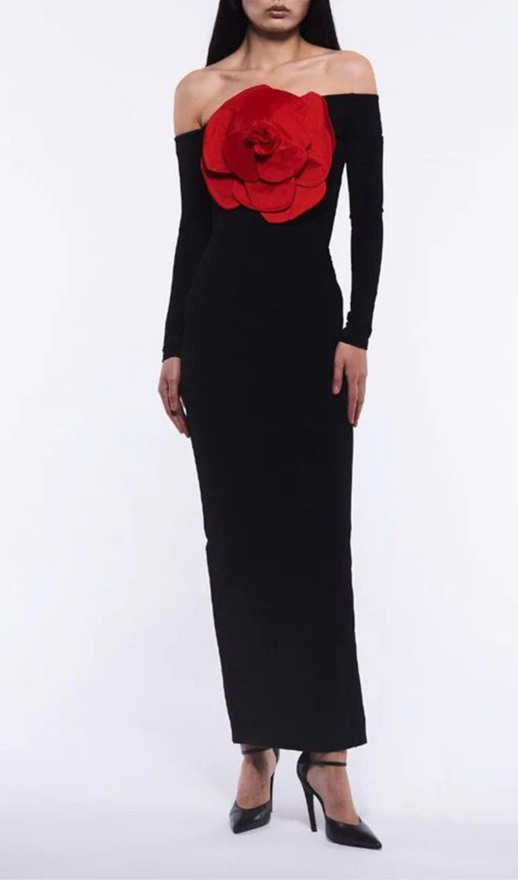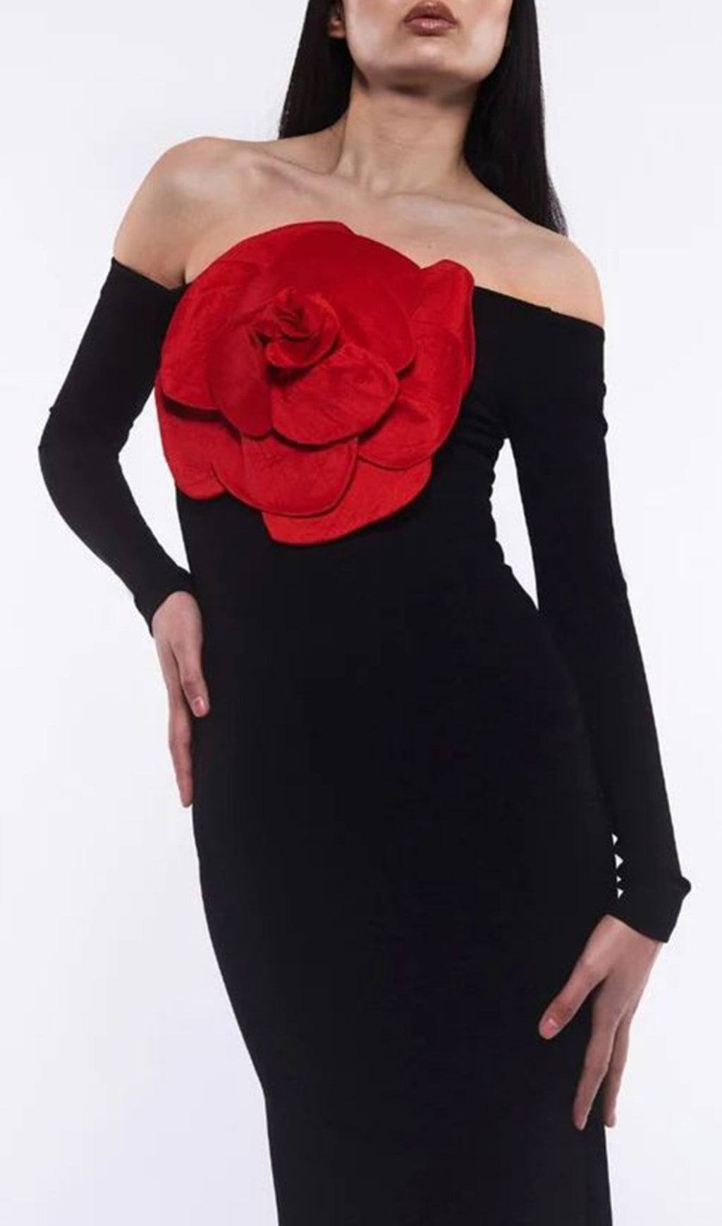 Fulfill your fairytale fantasies with this dress! Featuring delicate red roses in a luxurious black maxi dress, this showstopper will have you feelin' extra special. Perfect for a night out, or a romantic evening in!