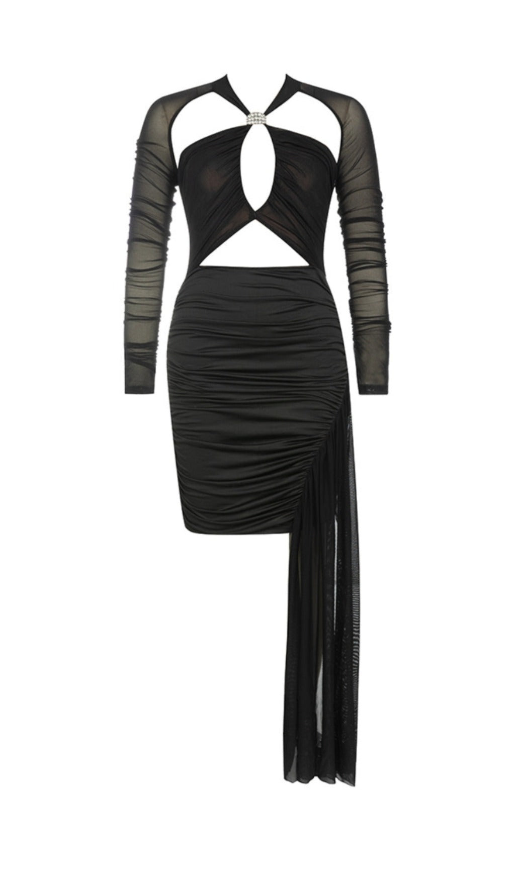 Step out in style in this bold BLACK CUT OUT DRAPED SIDE BODYCON DRESS. Show off your daring side and let your fashion statements do the talking. Make a statement and take risks with this dress!