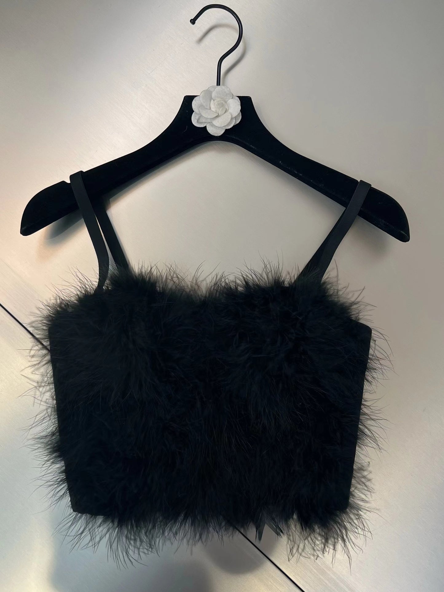 Feather makes this corset highlights the feminine playful and soft beauty.