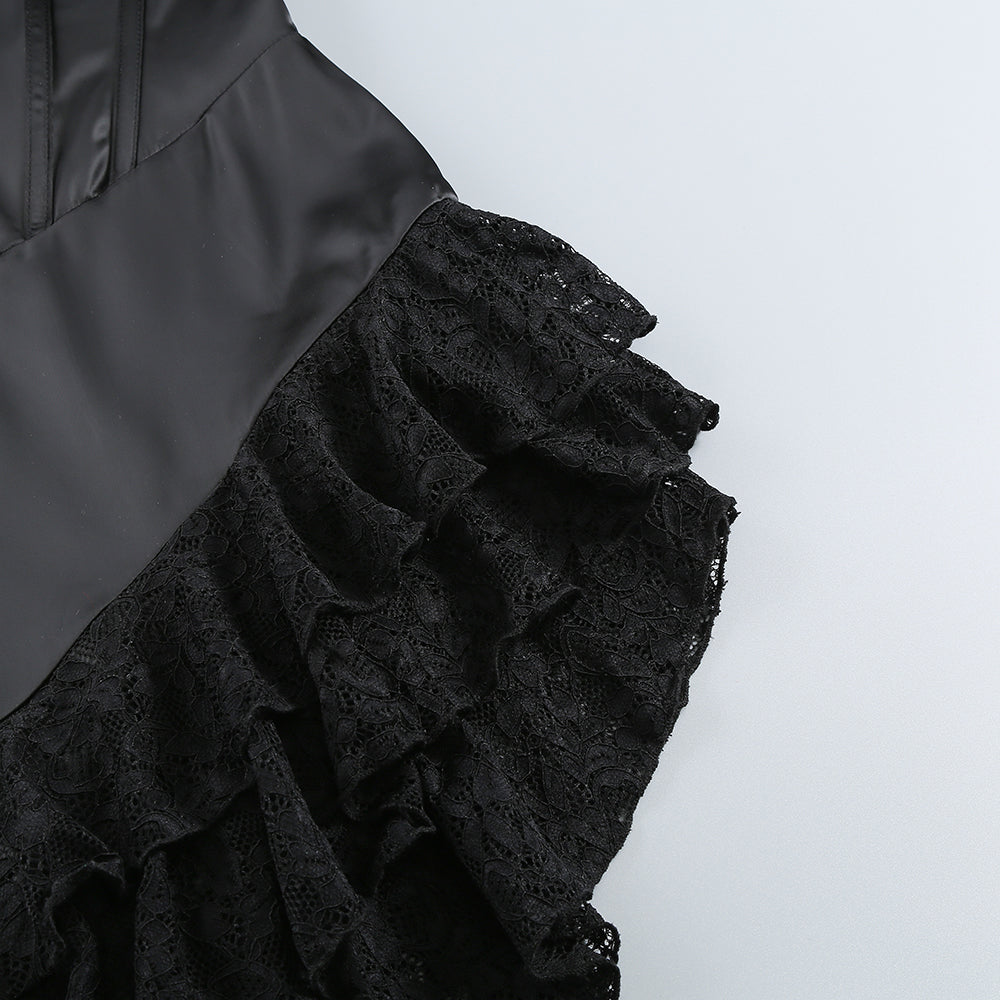 This classic corset gown features adjustable satin straps, lined and padded lace cups adorned with lace trimming, and corset boning to accentuate your figure. Crafted from luxury double duchess satin and stretch lace ruffle trimming, this stunning dress is perfect for prom, weddings, or any special occasion! Get this gorgeous piece in black and coral!