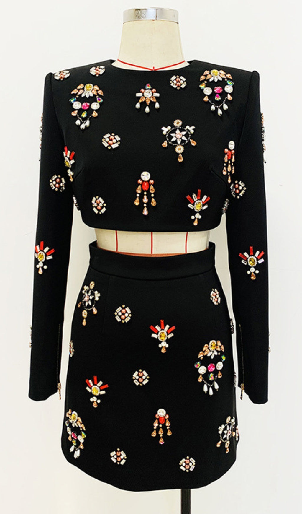 BLACK RHINESTONE EMBELLISHED SKIRT SET