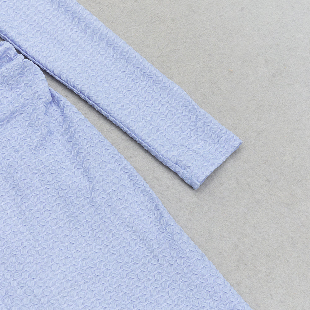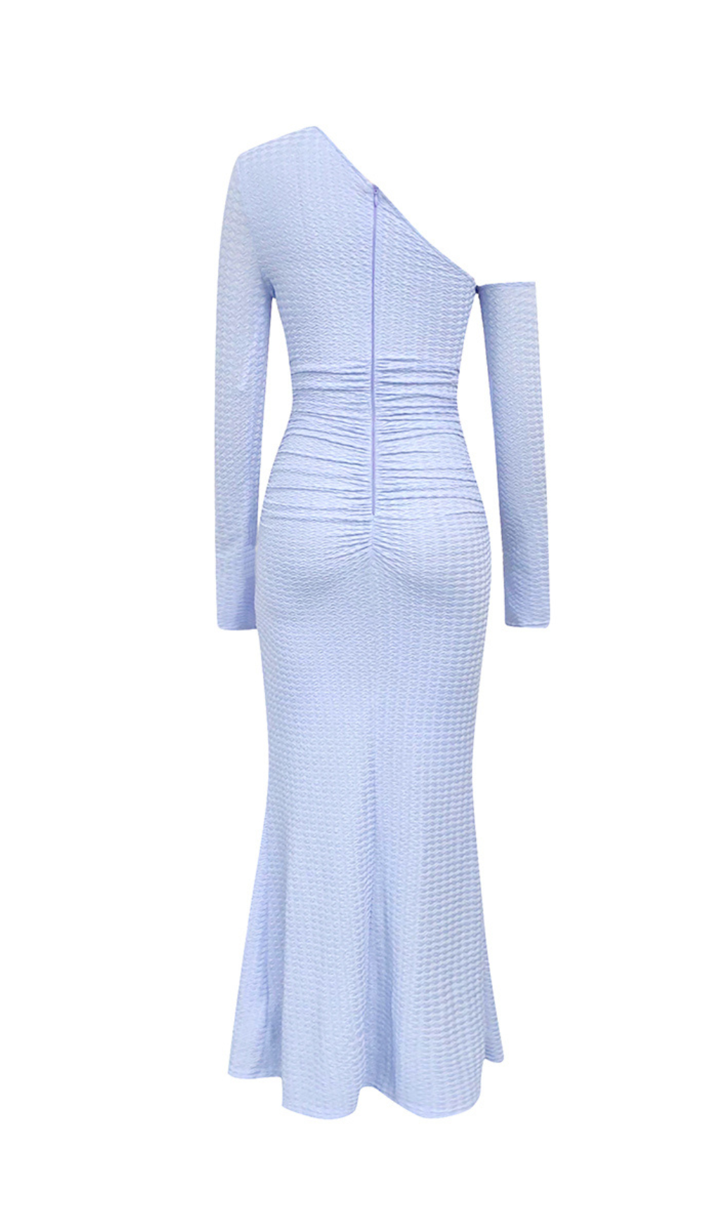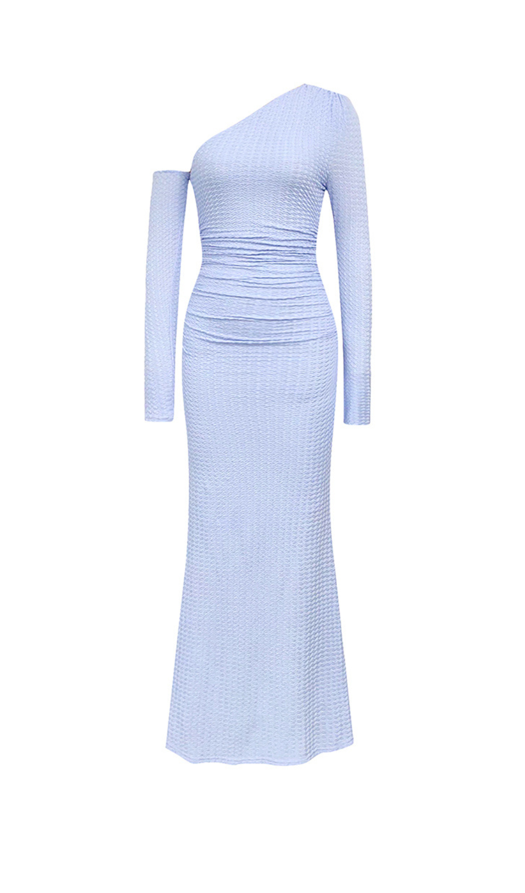 BLUE OFF-SHOULDER LONG-SLEEVED BODYCON MAXI DRESS