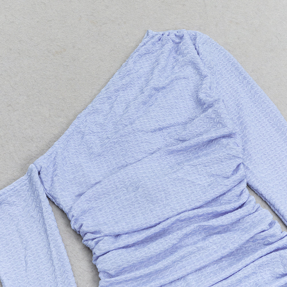 BLUE OFF-SHOULDER LONG-SLEEVED BODYCON MAXI DRESS – Gloria Lanvin