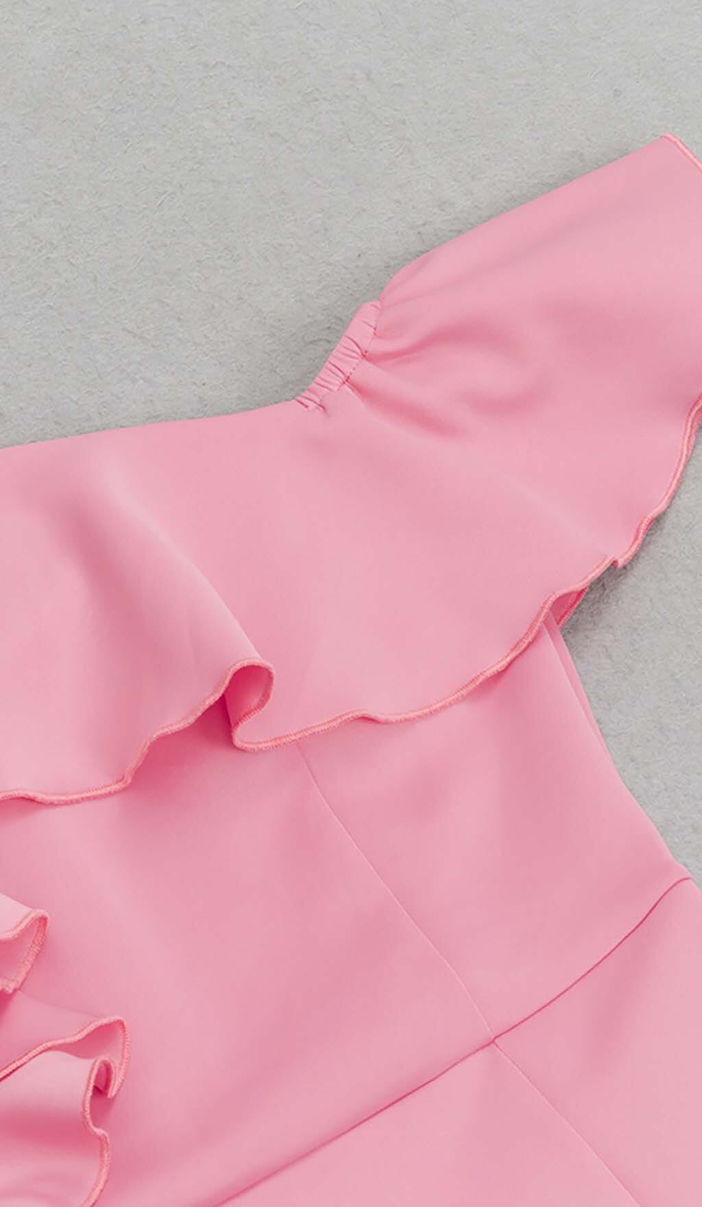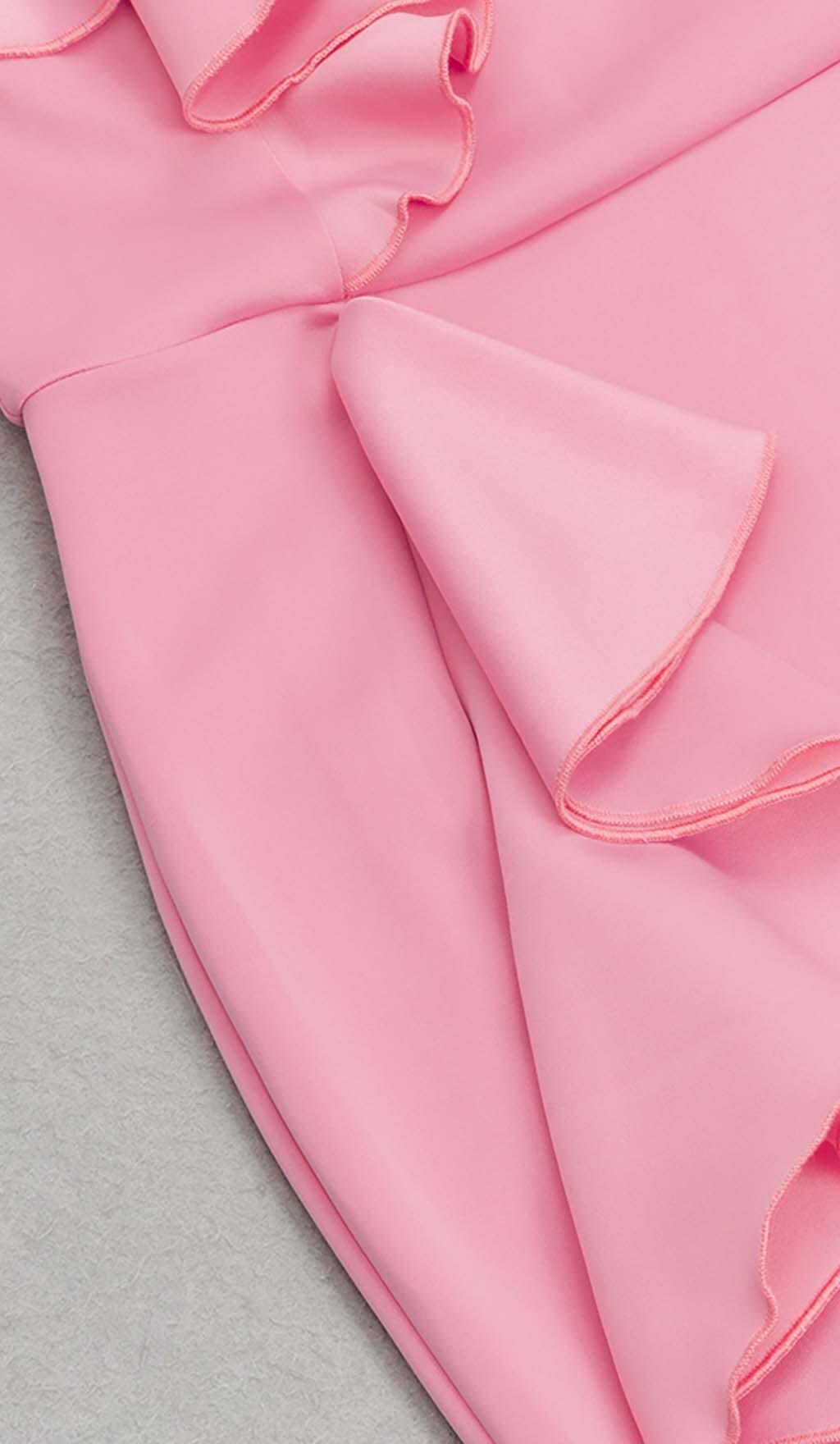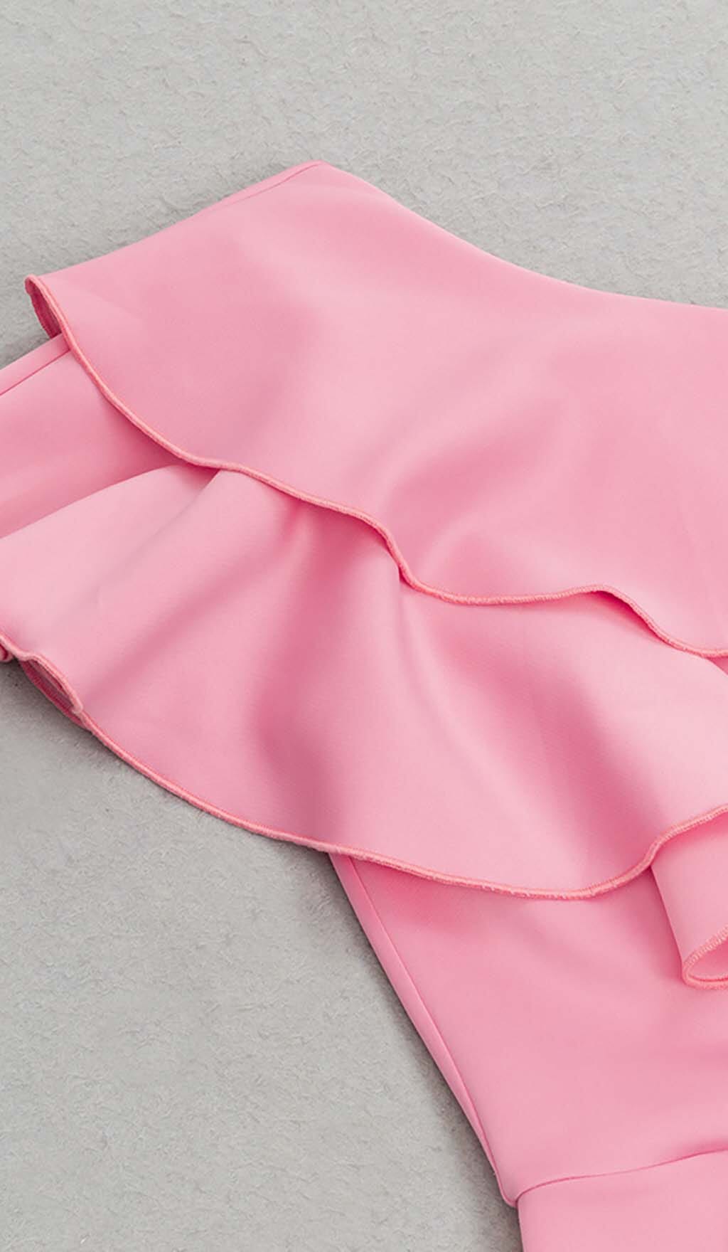BODYCON RUFFLE MIDI DRESS IN APRICOT