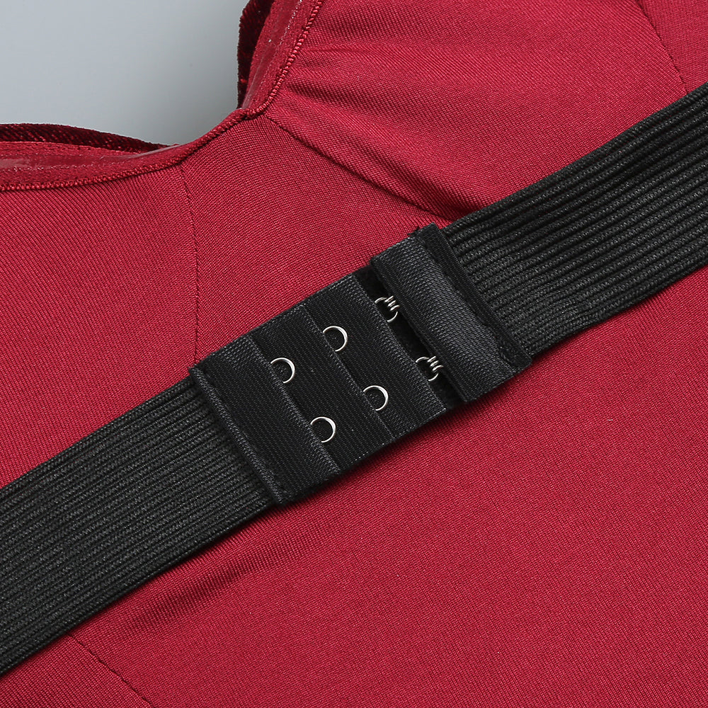 The rich burgundy color, elegant strapless design, and soft velvet fabric will make you feel confident and stylish all night long. Perfect for any special occasion, this midi dress is a must-have in your wardrobe.