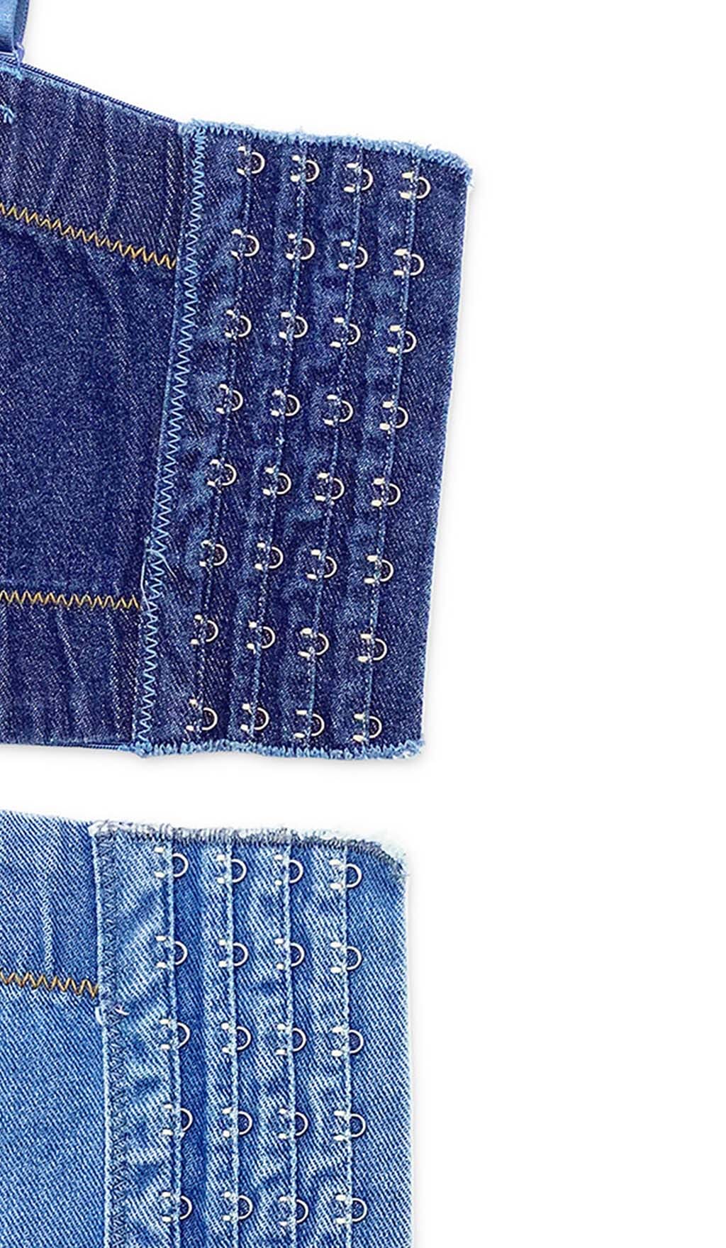 BUSTIER DENIM TOP IN BLUE-EMBELLISHED TWO-PIECE SUIT IN WHITE - STYLE OF CB - NEW STYLE DRESS FREE SHIPPING DRESS NEW LOOK DRESSES SALE – Gloria Lanvin