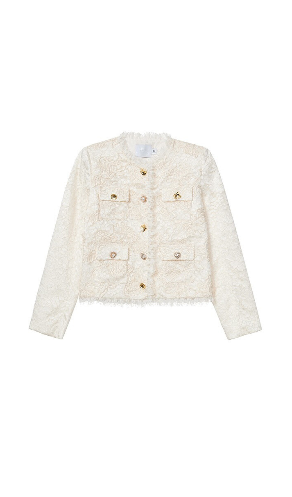 With its delicate lace detailing and playful design, this jacket is sure to make a statement. Perfect for any occasion, dress it up or down for a dose of unique style."