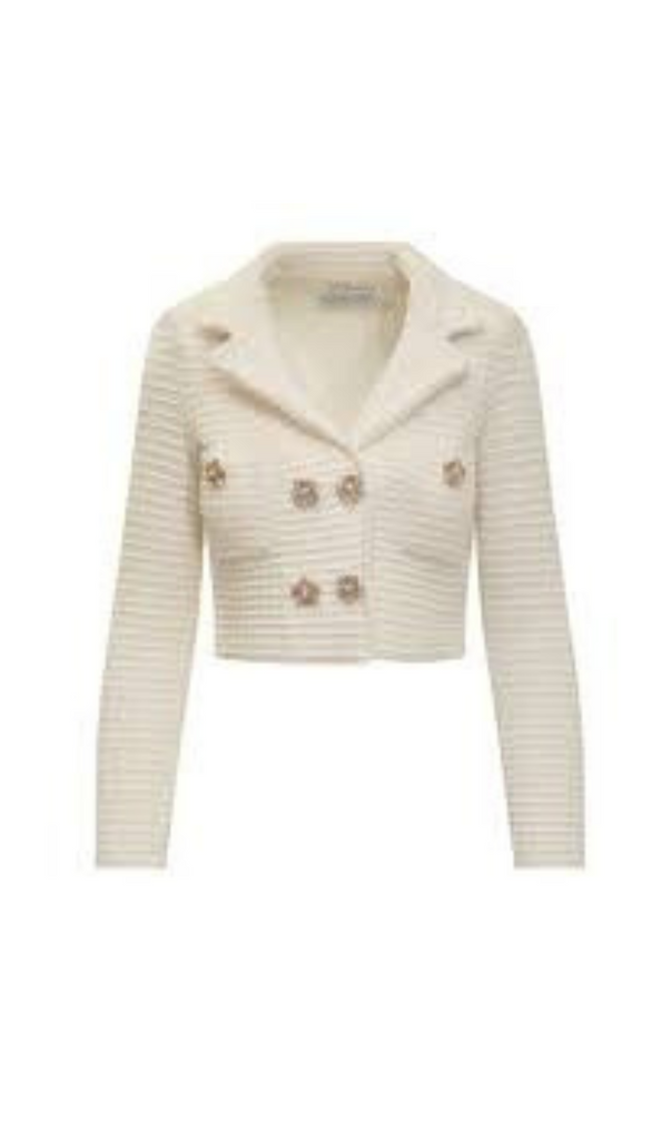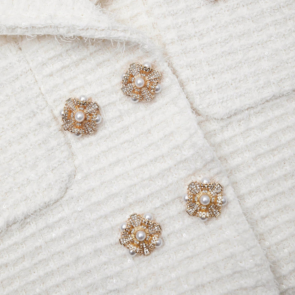 This unique jacket features a playful blend of sequins and knit for a fun and quirky look. Stay warm and stylish with this must-have addition to your wardrobe!"