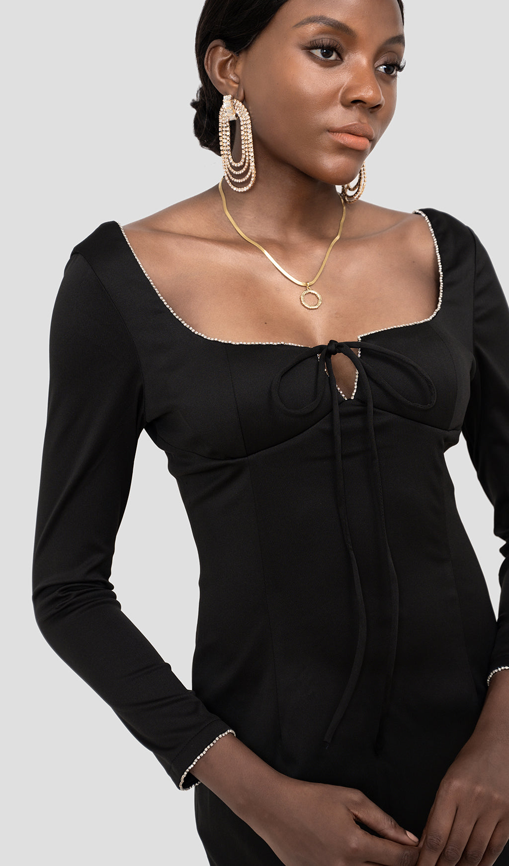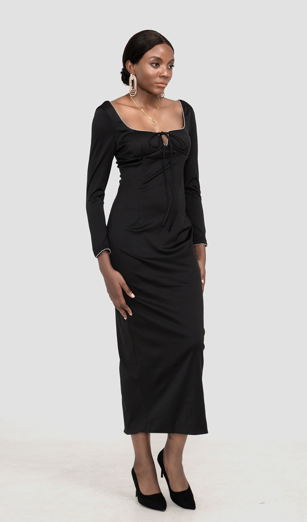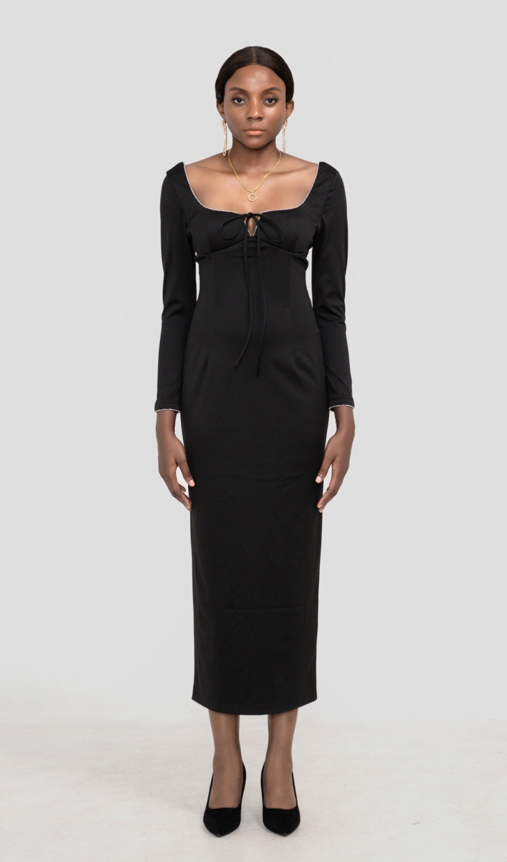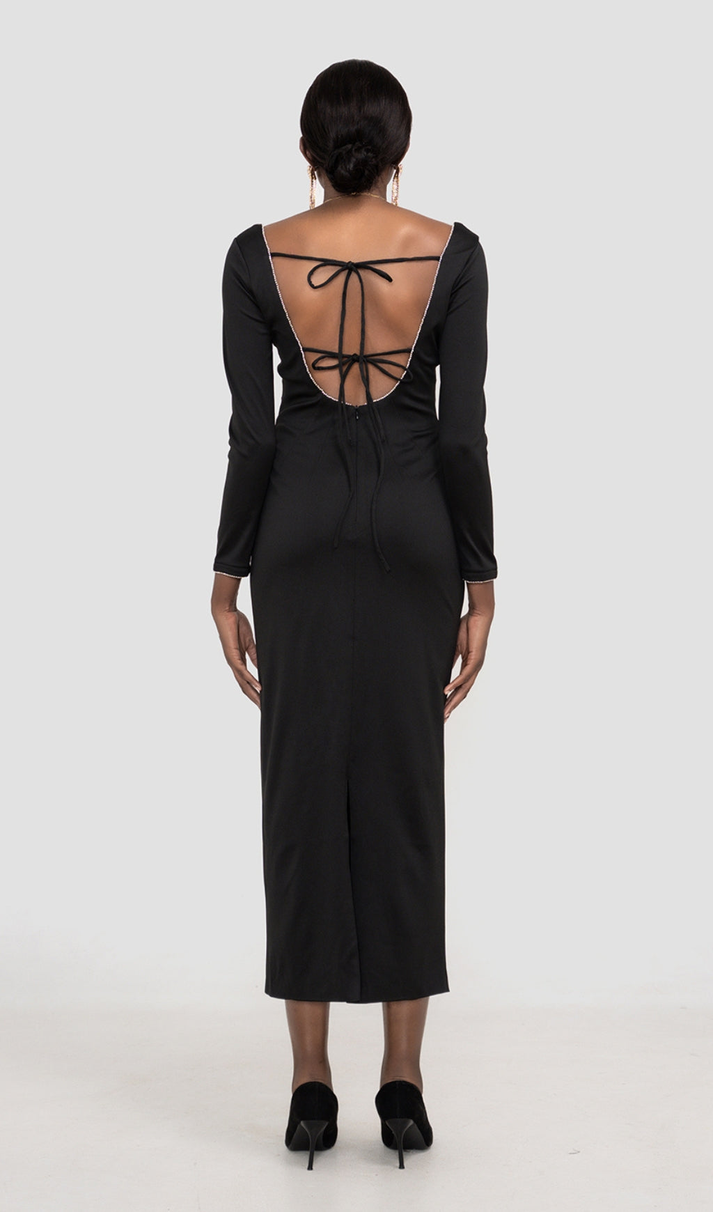 CRYSTAL EMBELLISHED MAXI DRESS IN BLACK