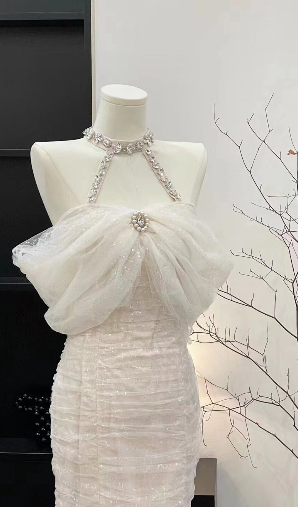 Elevate your evening with our Sequin Mini Dress featuring a diamond strap, strapless design, and a statement oversized bowknot. The dress boasts eye-catching sequins for a glamorous touch, ensuring you shine at any event. With a comfortable fit and available in various colors, this mini dress is perfect for making a memorable entrance at parties and special occasions.