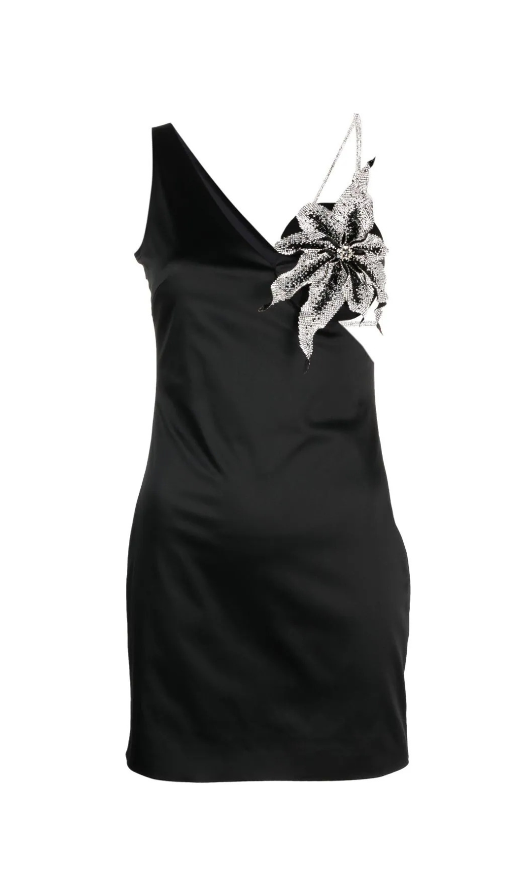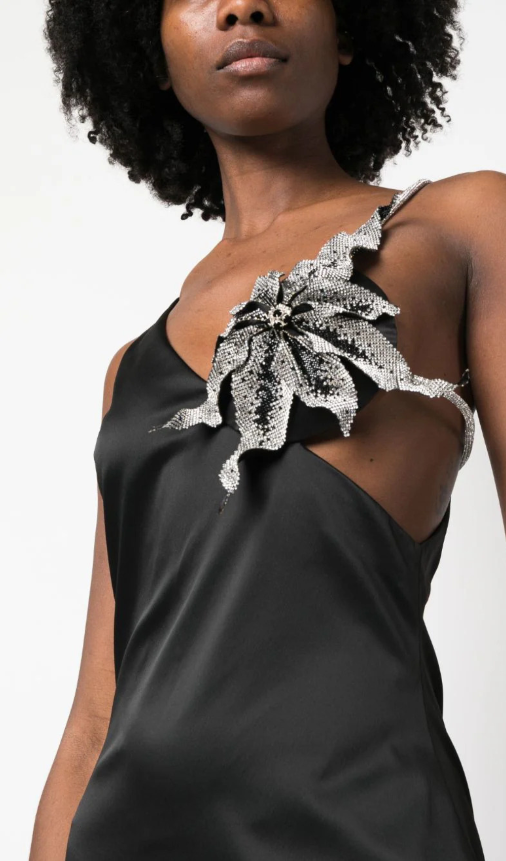 CRYSTAL SPIRAL SLIP MINI DRESS IN BLACK
