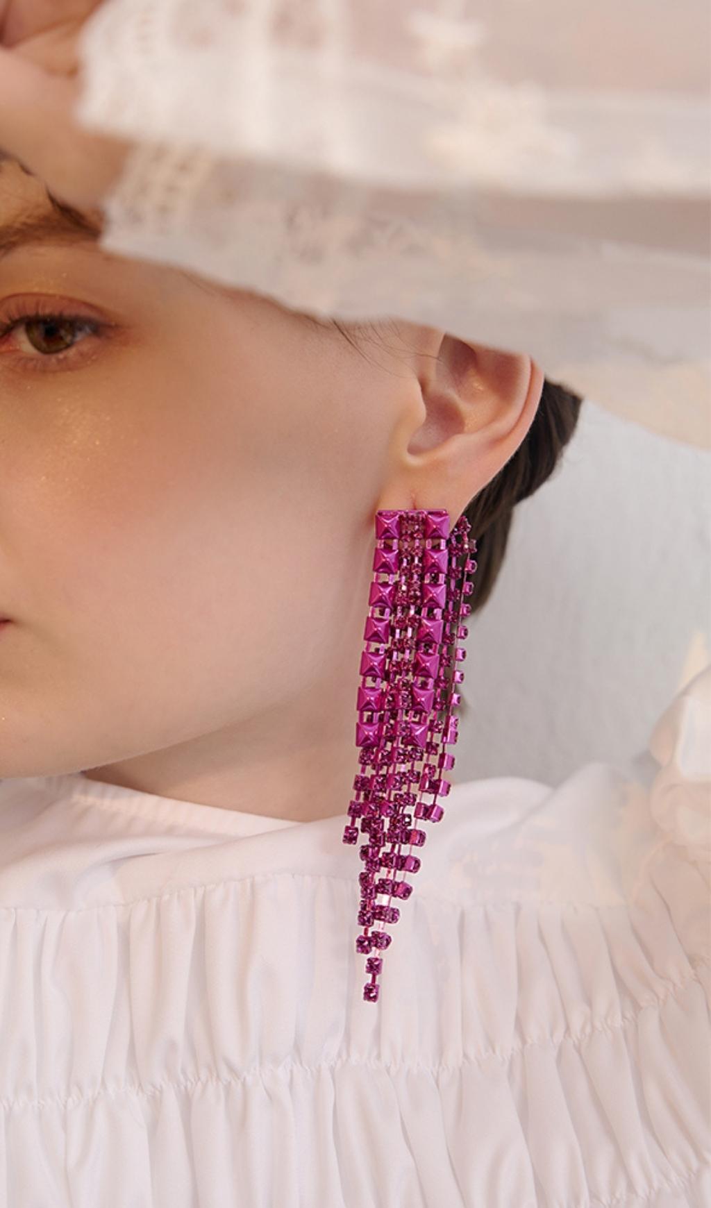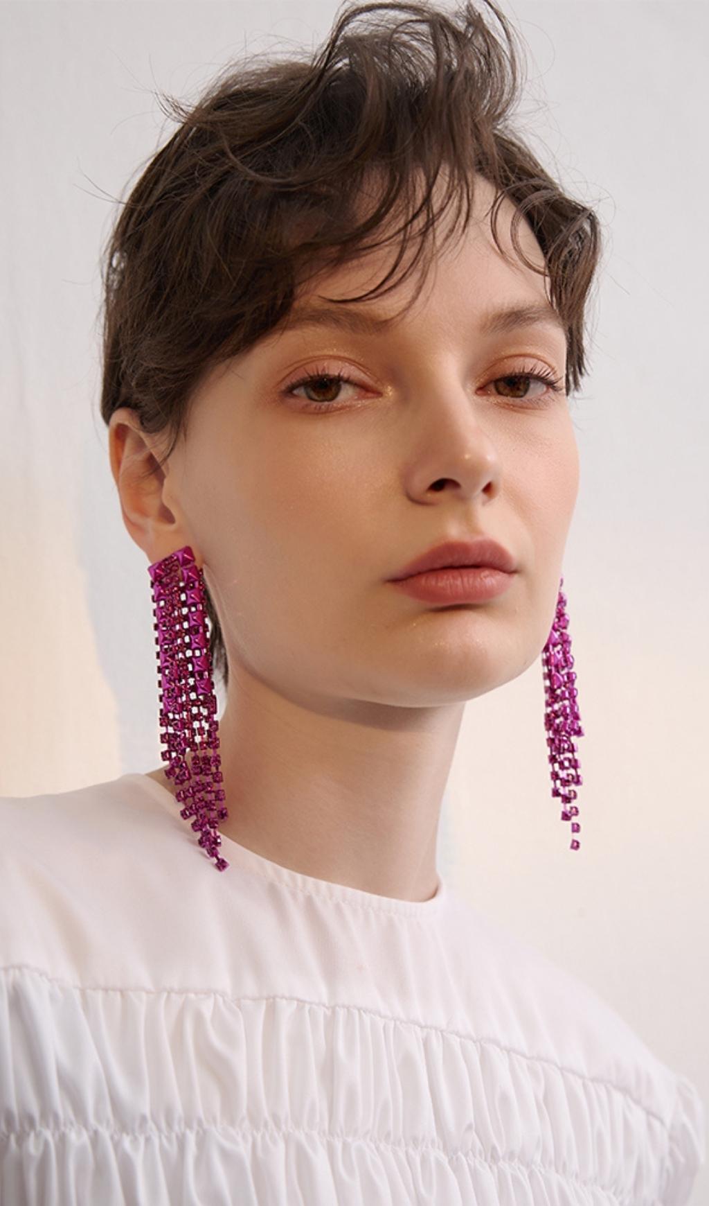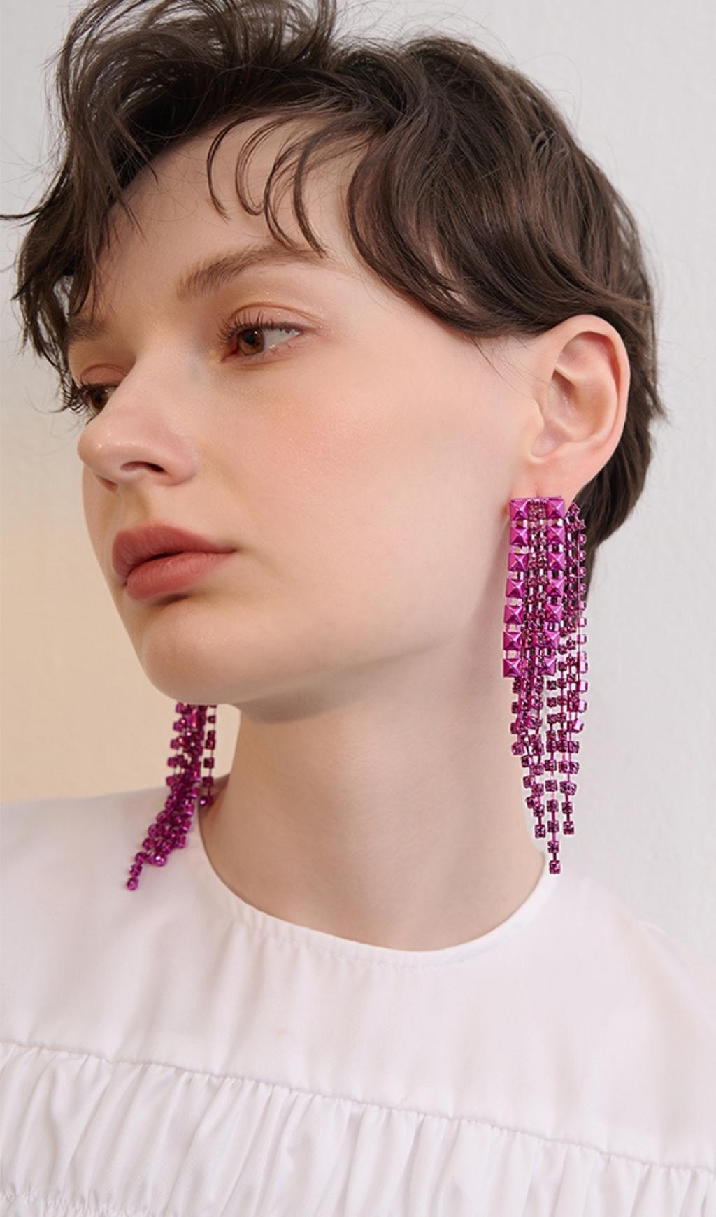 Dark Violet Rhinestone Tassel Earrings – Gloria Lanvin