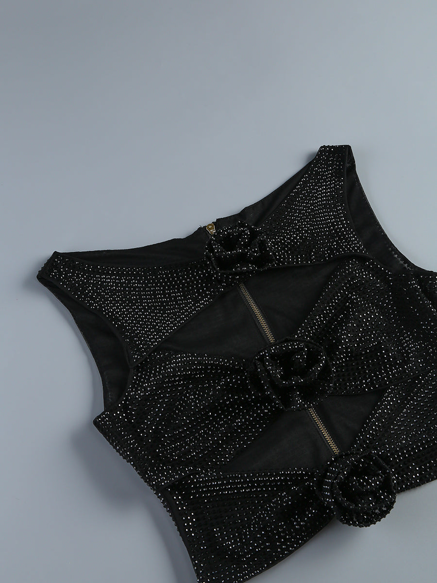 The elegant floral pattern and unique cut-outs create a stunning silhouette. Made with high-quality crêpe fabric, this dress is both comfortable and chic. Perfect for any occasion, this dress is a must-have for your wardrobe.