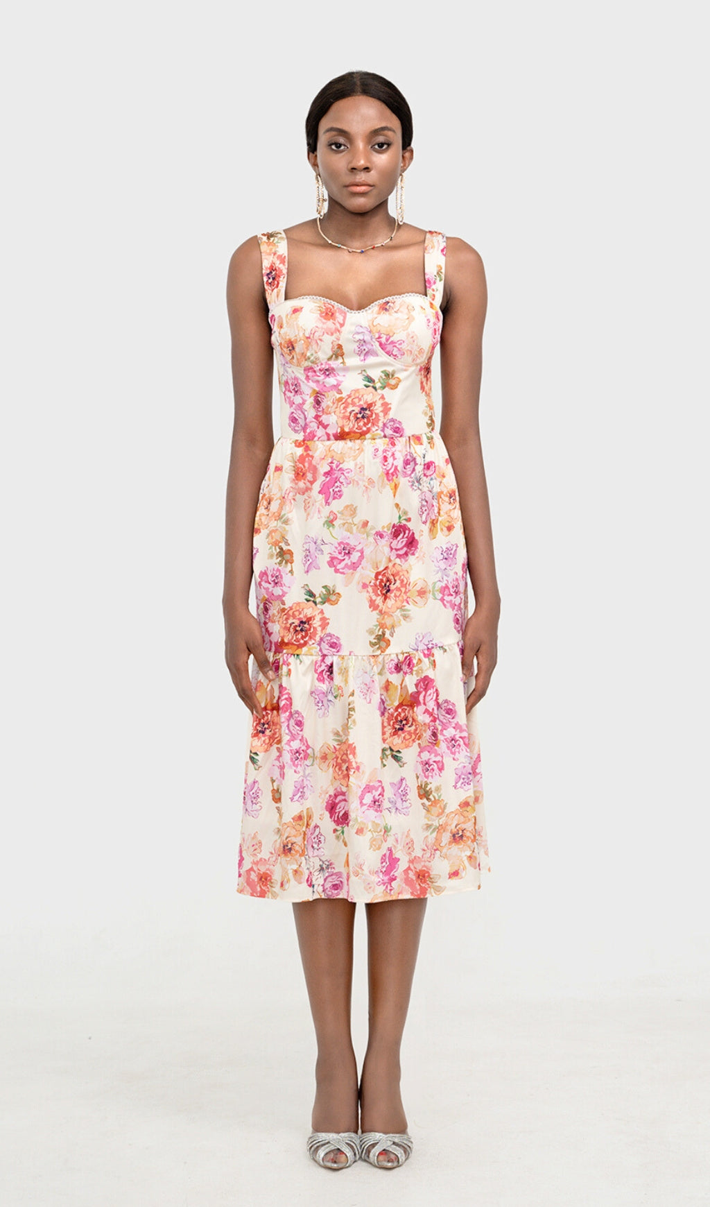 IVORY FLORAL MIDI SUNDRESS-midi dresses-floral dresses-ruched dresses-ivory-regular size-hidden zipper-sexy-latest-new in dresses-party dress-prom dresses-homecoming dress-graduation dress-formal wear-clothing-dresses for women 2023-dress summer 2023-dress winter 2023-dress women elegant luxury 2023 wedding-midi dress summer-midi dresses for women-formal dress women elegant – Gloria Lanvin