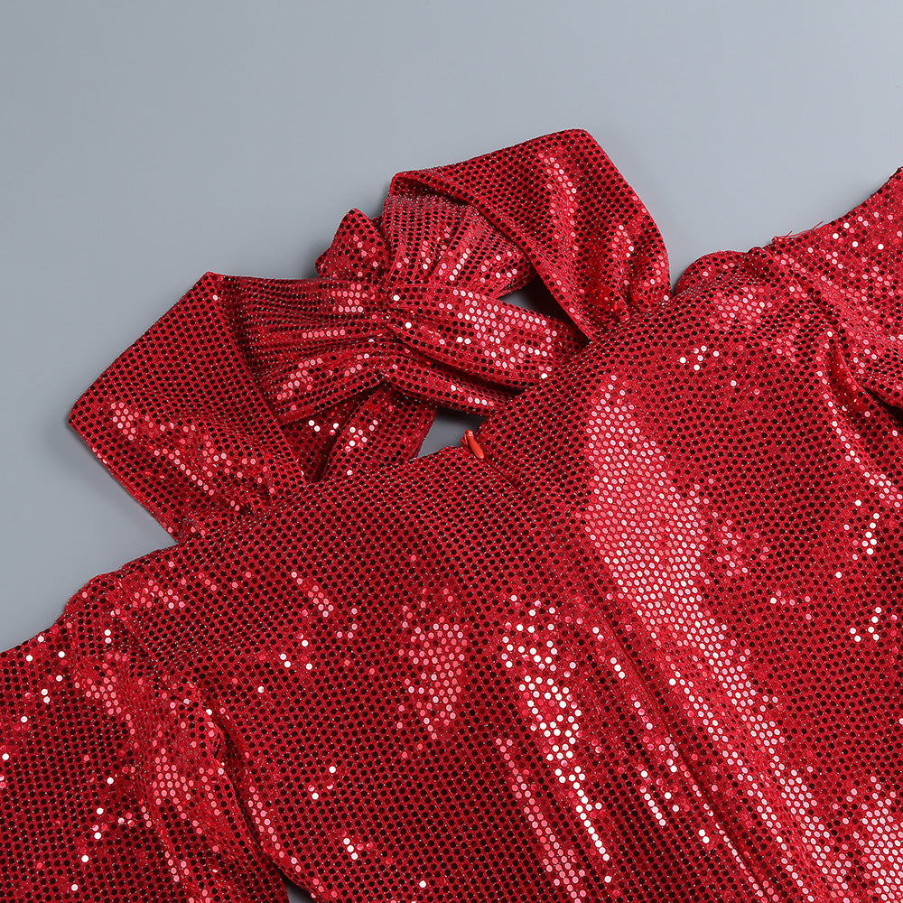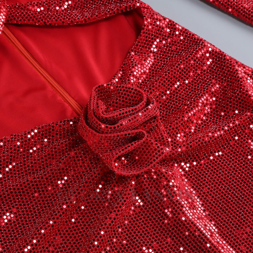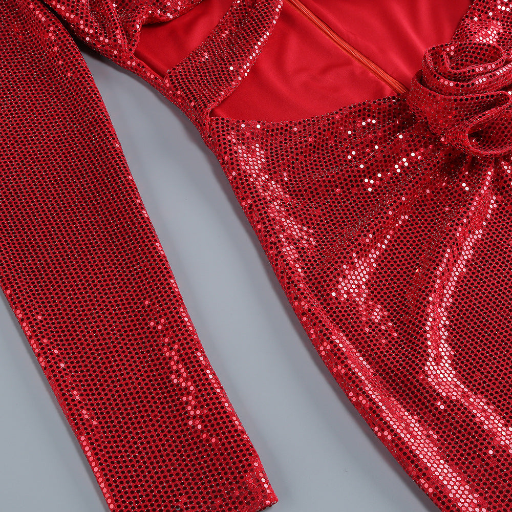 Turn heads in this daring maxi dress with cutout details and sparkling sequins. The red dress is embellished with bold flower accents, making you stand out in any crowd. Perfect for those who want to take risks and make a statement. Let this dress be your next adventure!
