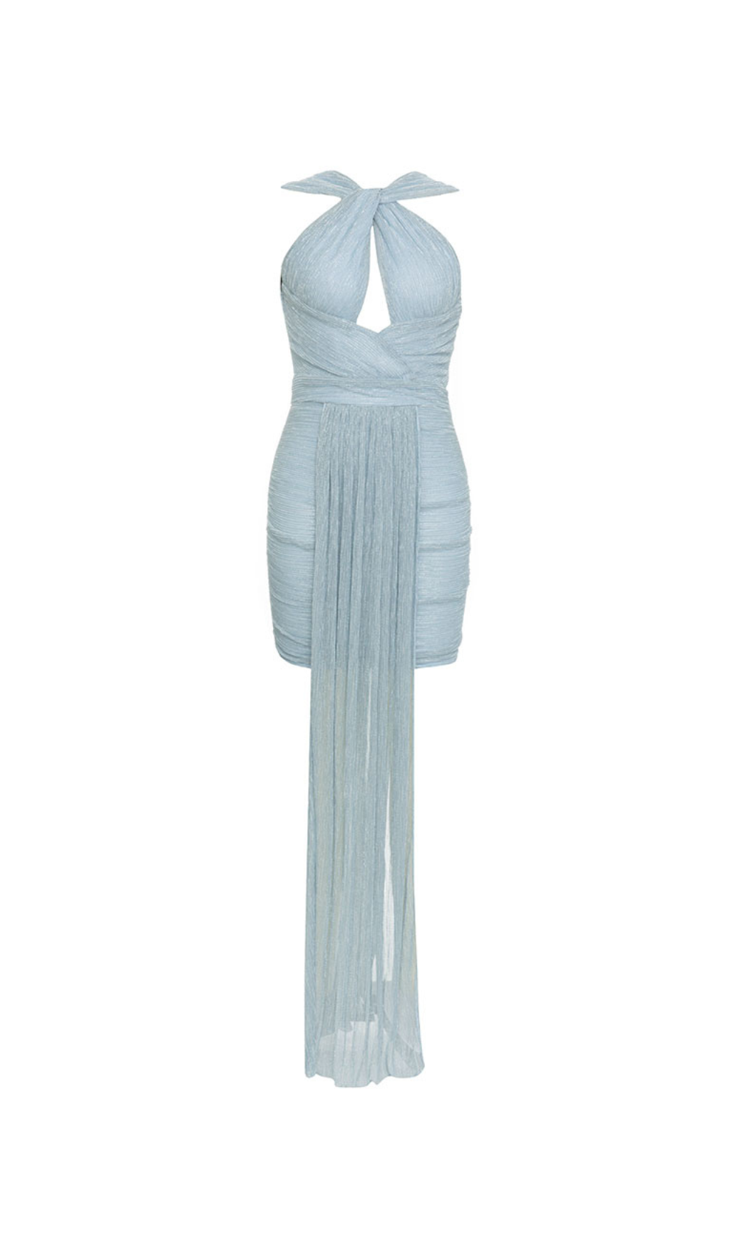 this dress hugs your curves and accentuates your figure, making you feel confident and sexy. The halter neckline creates a bold look, perfect for a night out or special occasion.