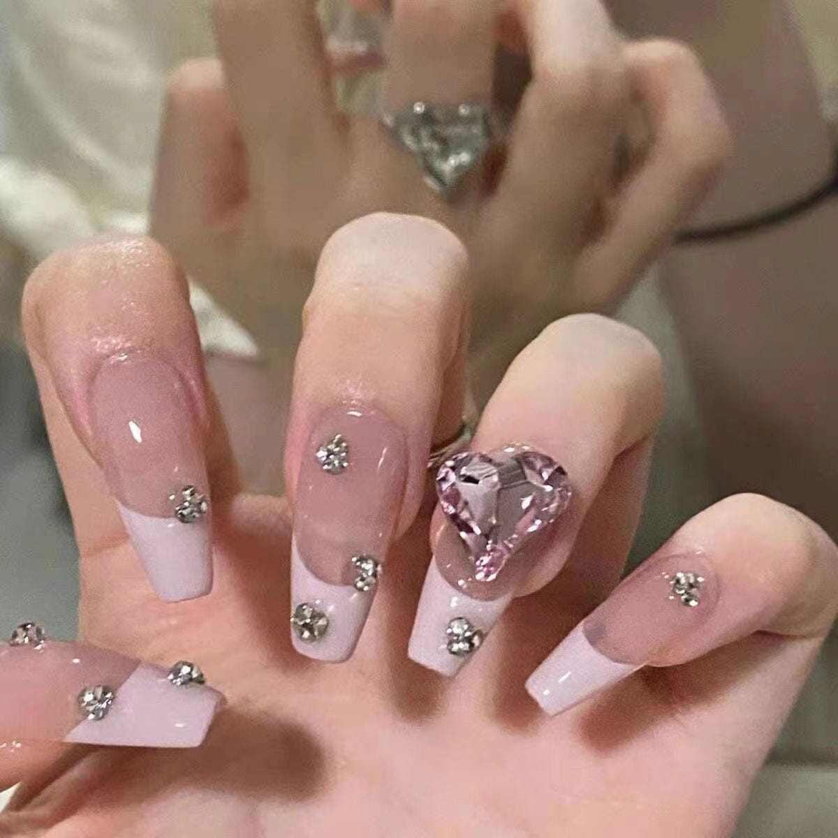 Experience the elegance and glamour of the Heart Crystal Pink French Press On Nails. Featuring radiant heart-shaped crystals, these beautiful nails bring a touch of luxury to any look. Perfect for special occasions or everyday wear, these nails add a luxurious sparkle to your style.