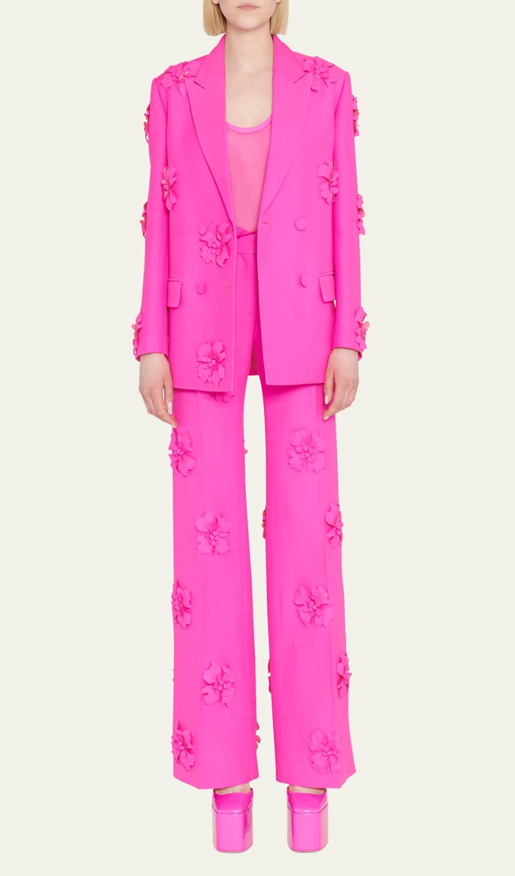 Want a suit that's dull, not boring, and has enough to go with it? This is the perfect suit for you. The eye-catching bright pink has a stylish attitude and will make your skin look radiant no matter what skin tone you have. No matter what kind of single item, can be seen in the crowd at a glance. The double-breasted design gives you elegance and style, and the cut of the three-dimensional flowers is like art sculpture embedded in your clothes. The flowers are retro and sophisticated, with a touch of Rococo period flavor, making you gorgeous and feminine. The loose shape adds a casual feel to the jacket, making it easy to wear no matter what the occasion.