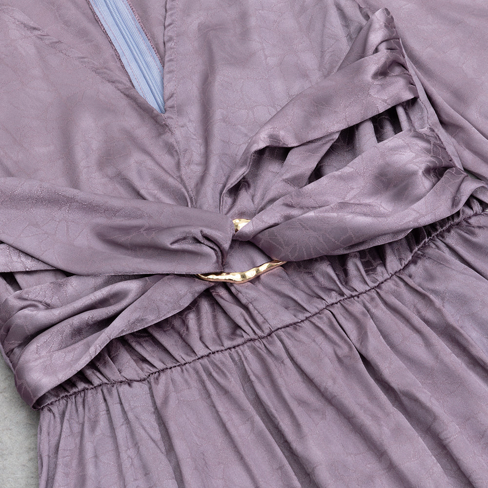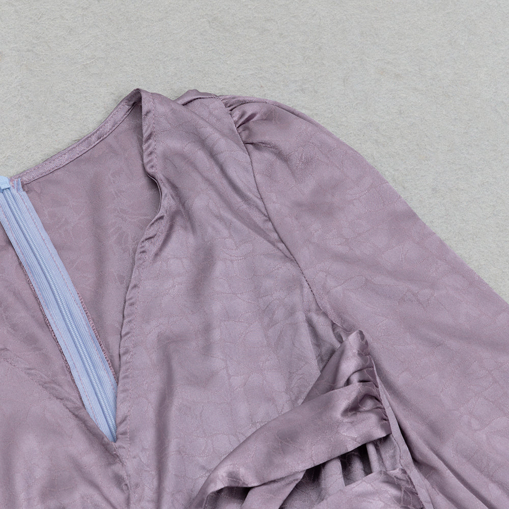 Featuring stunning lantern sleeves and a split thigh design, this dress exudes elegance and sophistication. Made with high-quality jacquard fabric, it offers a comfortable and luxurious feel. Elevate your style with this exclusive piece.