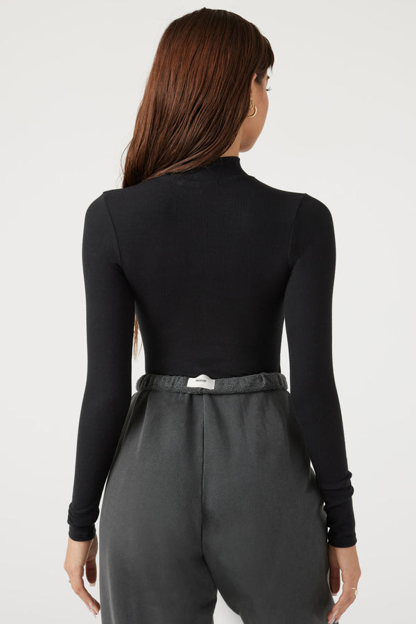 Full Length Mock Neck Long Sleeve With a Half Zip Detail Down the front.