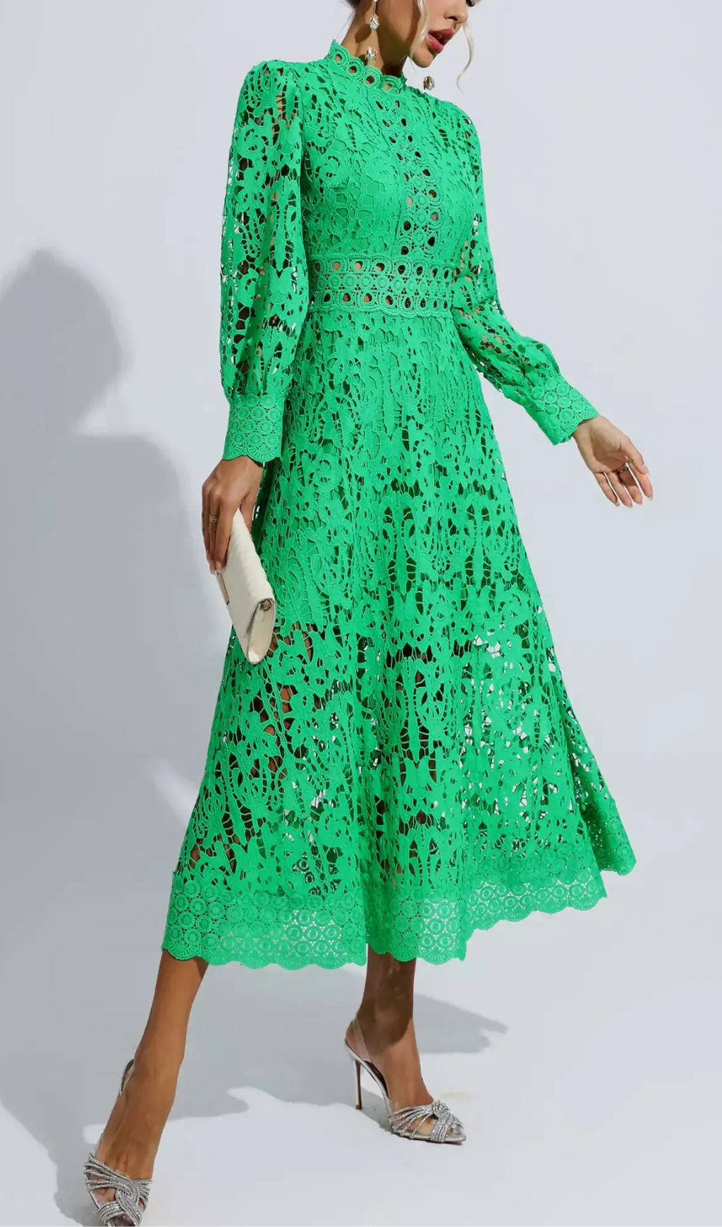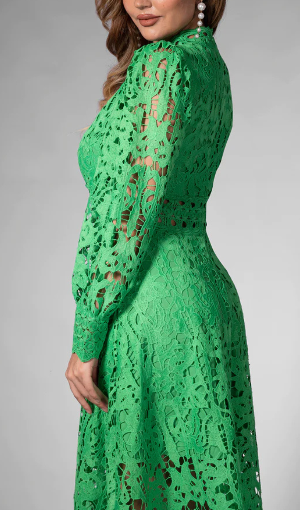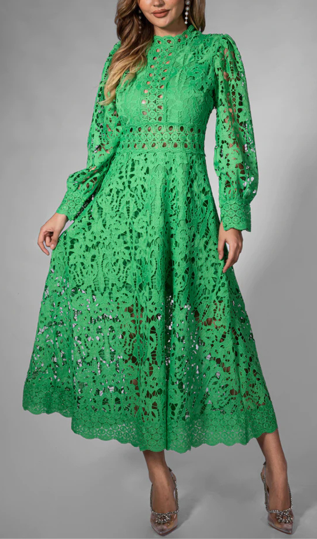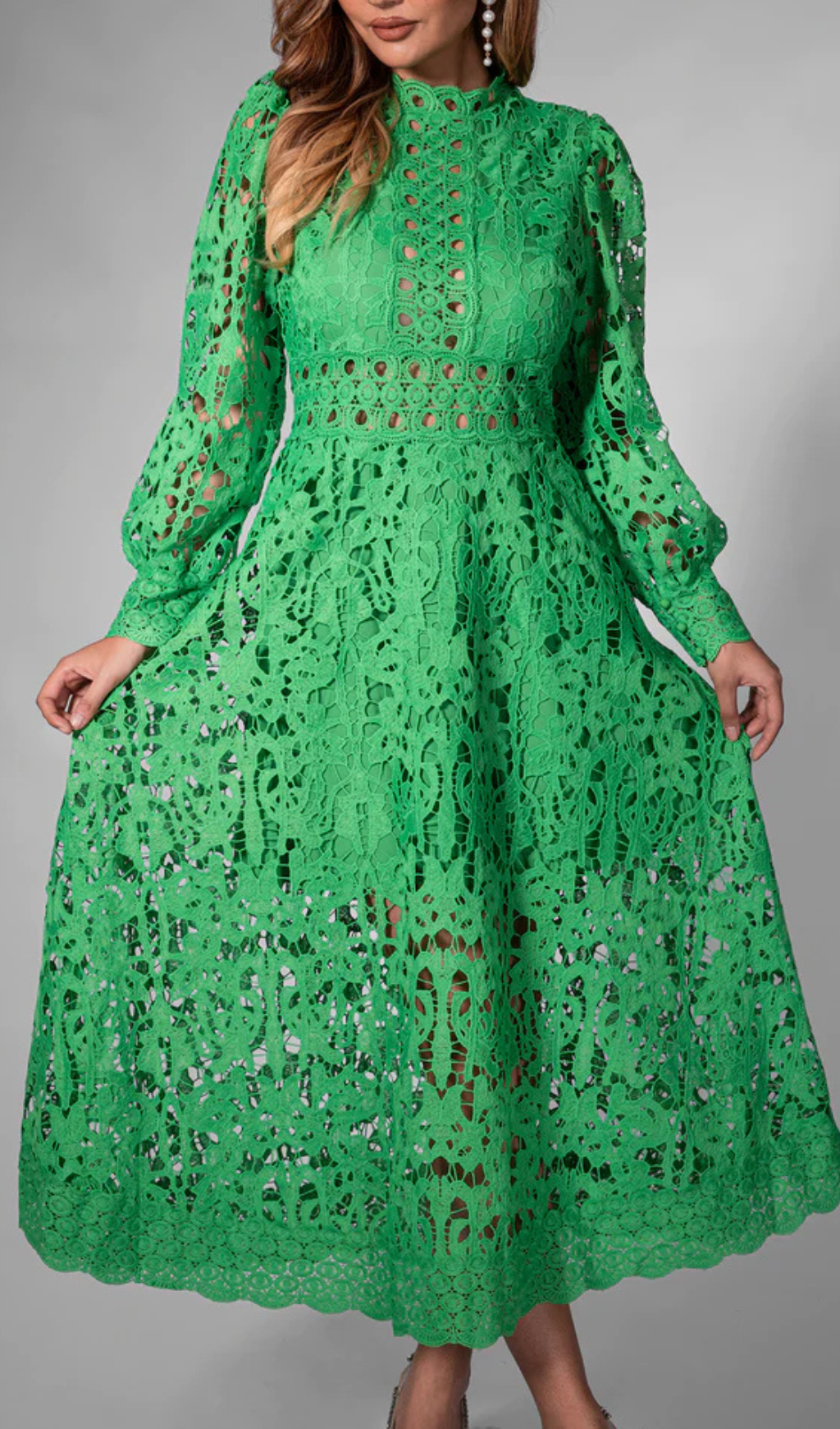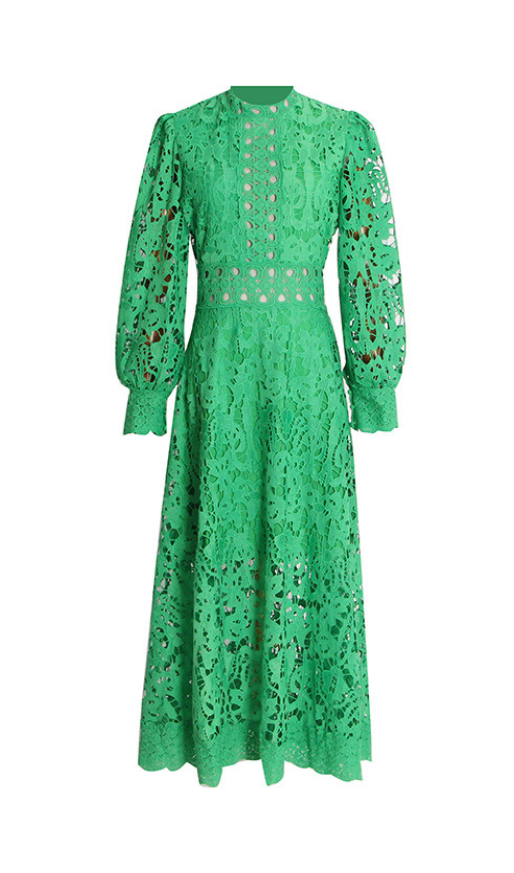 Elevate your style with the Dress; crafted from delicate lace, it features long sleeves and a maxi skirt. Hollow design, adding subtle sexy charm. This dress adds sophistication and style to any look. Put on your high heels and join your weekend activities!