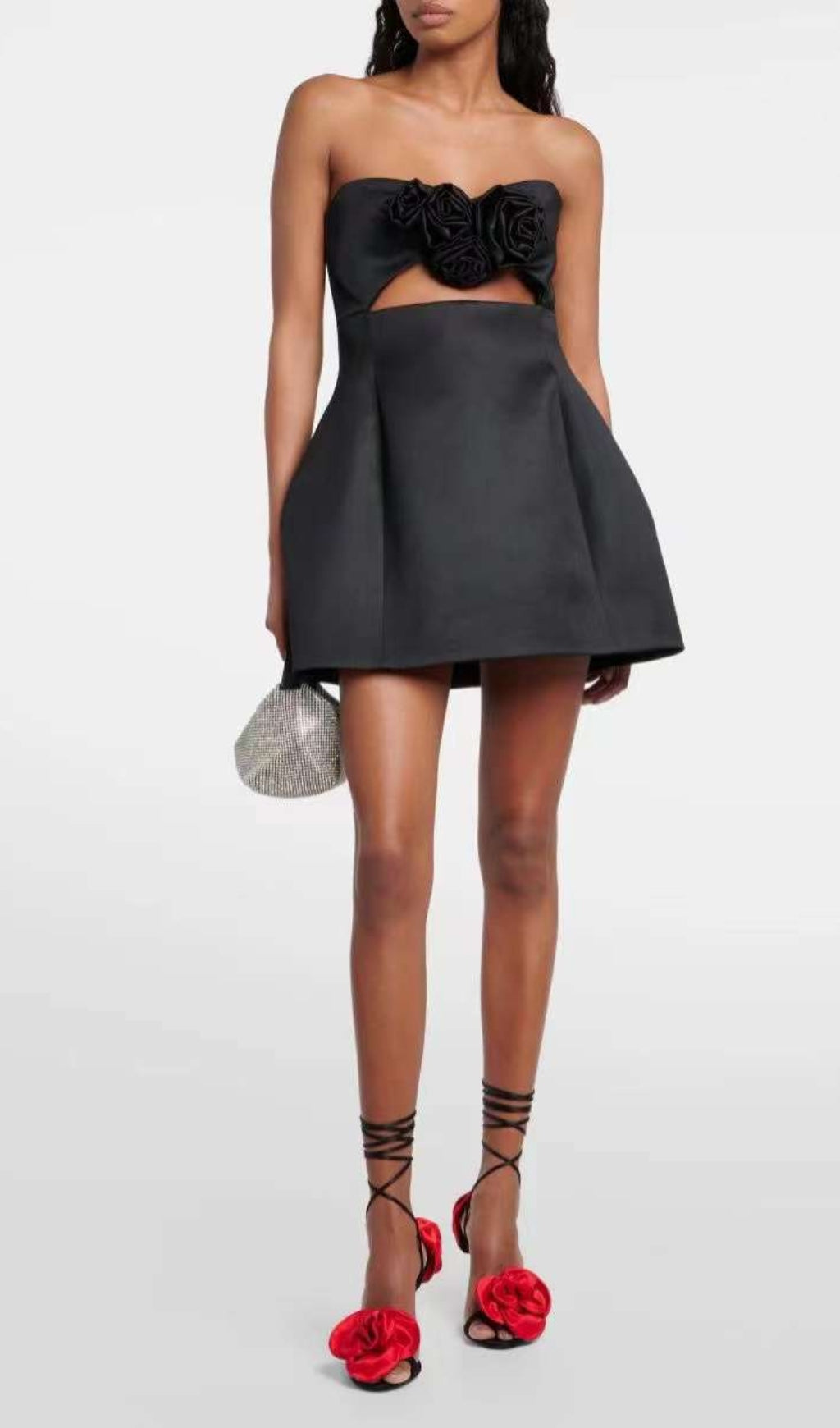 The Strapless Cutout Mini Dress is sure to make a stunning statement. Crafted with a strapless design, 3D flower elements, and bold cutouts, this mini dress is perfect for creating a truly unique look. It features a mini length that ensures a flattering fit, while an eye-catching color will make sure you stand out.