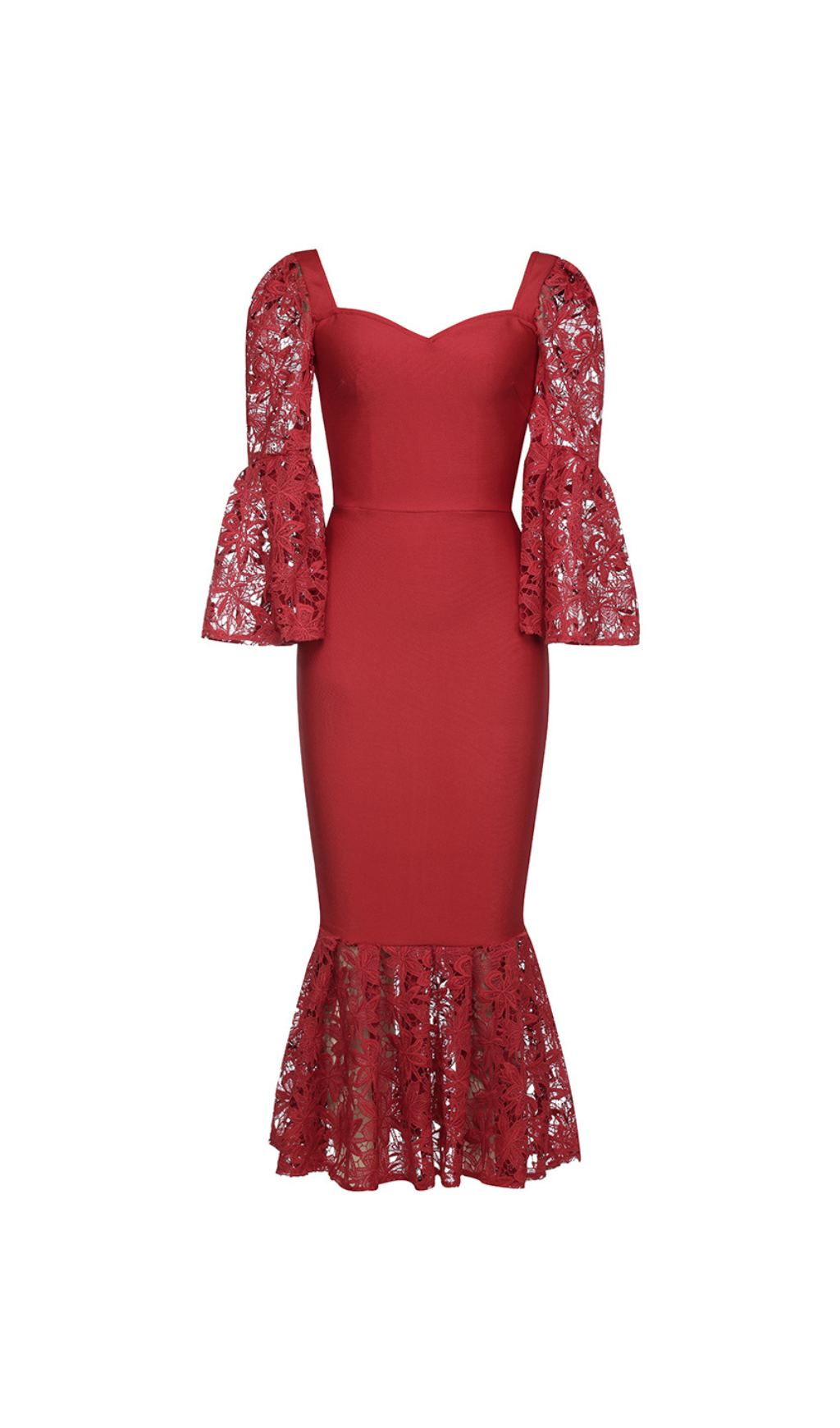 This dress features intricate lace sleeves that add a touch of elegance to the bold red color. Fit for all your daring adventures, this dress will make you stand out wherever you go.