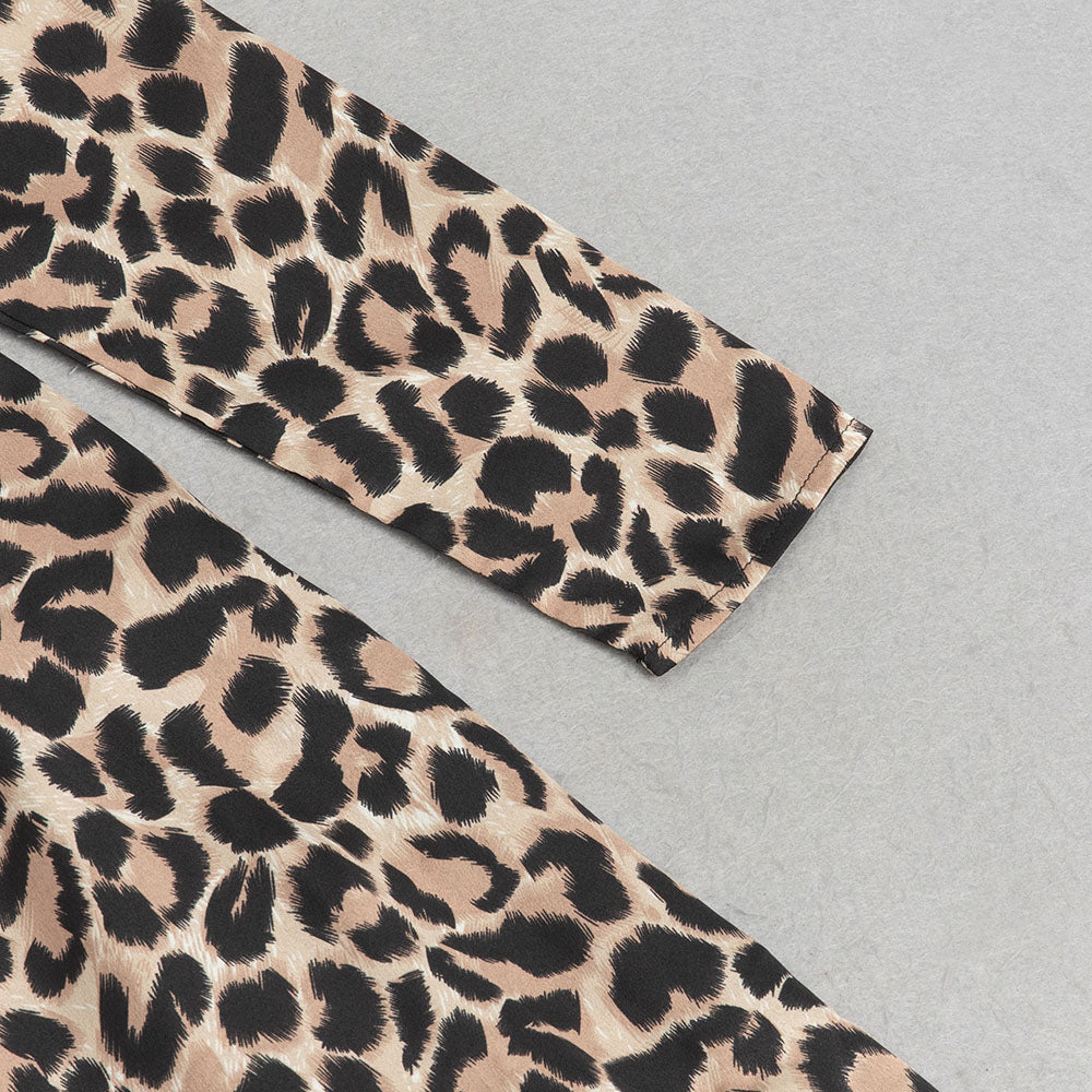 LEOPARD PRINT MOCK NECK RUFFLE TRIM WRAP HEM DRESS