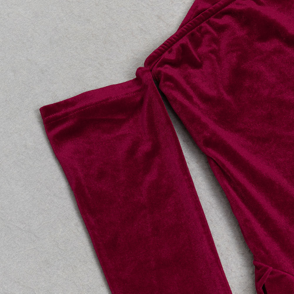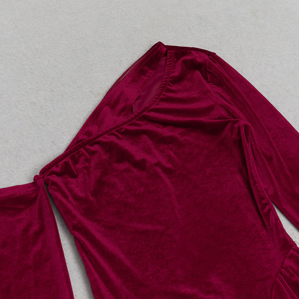 The soft velvet fabric and flattering A-line silhouette will make you feel elegant and confident. The dress features long sleeves and a strapless neckline, making it perfect for any occasion.