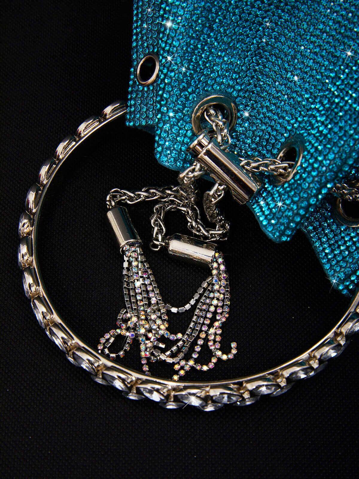 Our signature Crystal Embellished Bucket Bag In Blue is crafted from hot pink crystal. A statement accessory to love forever, it is finished with a sparkling crystal top handle and a sleek drawstring chain that cinches the supple shape. Take yours with you everywhere.