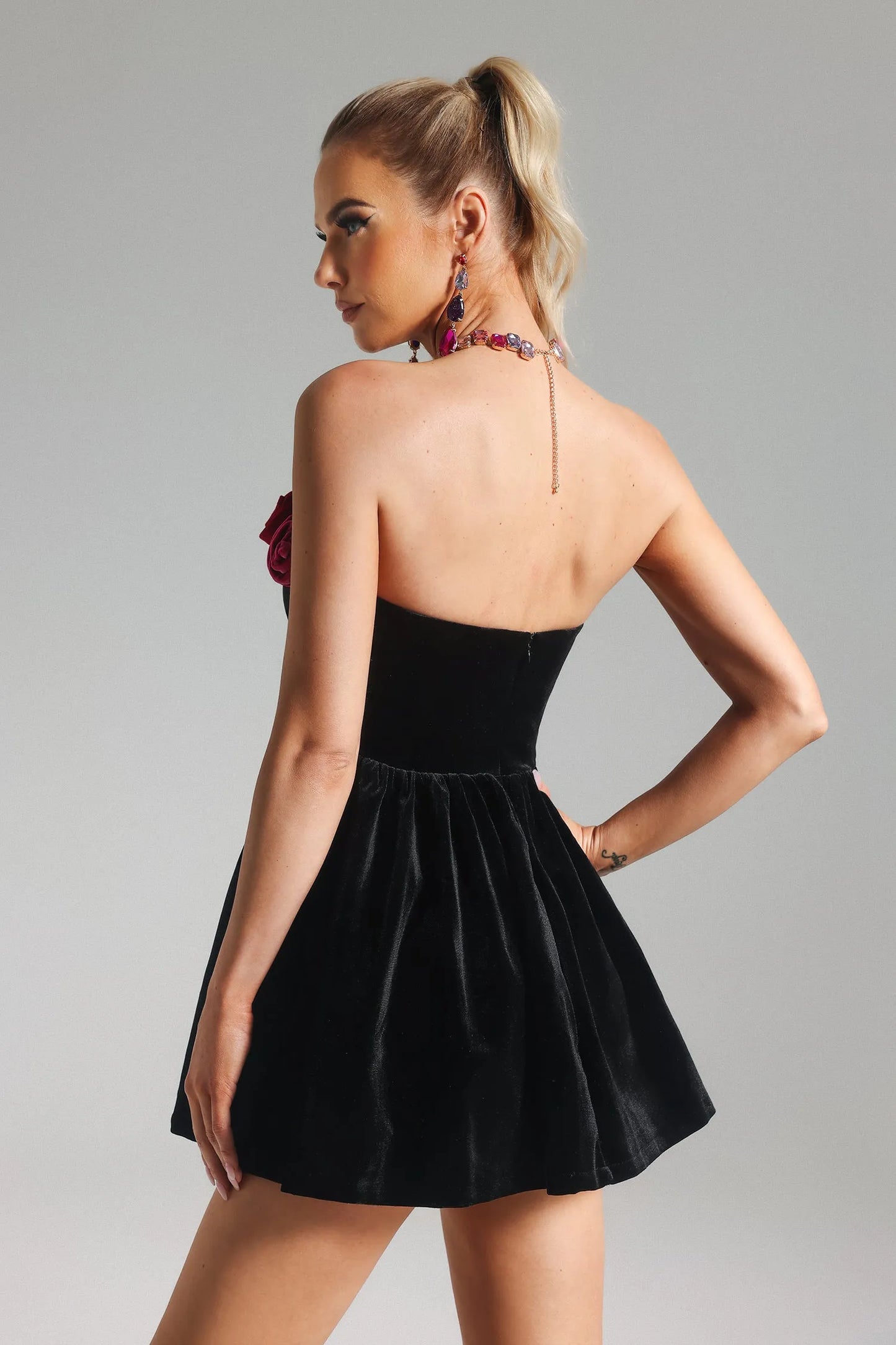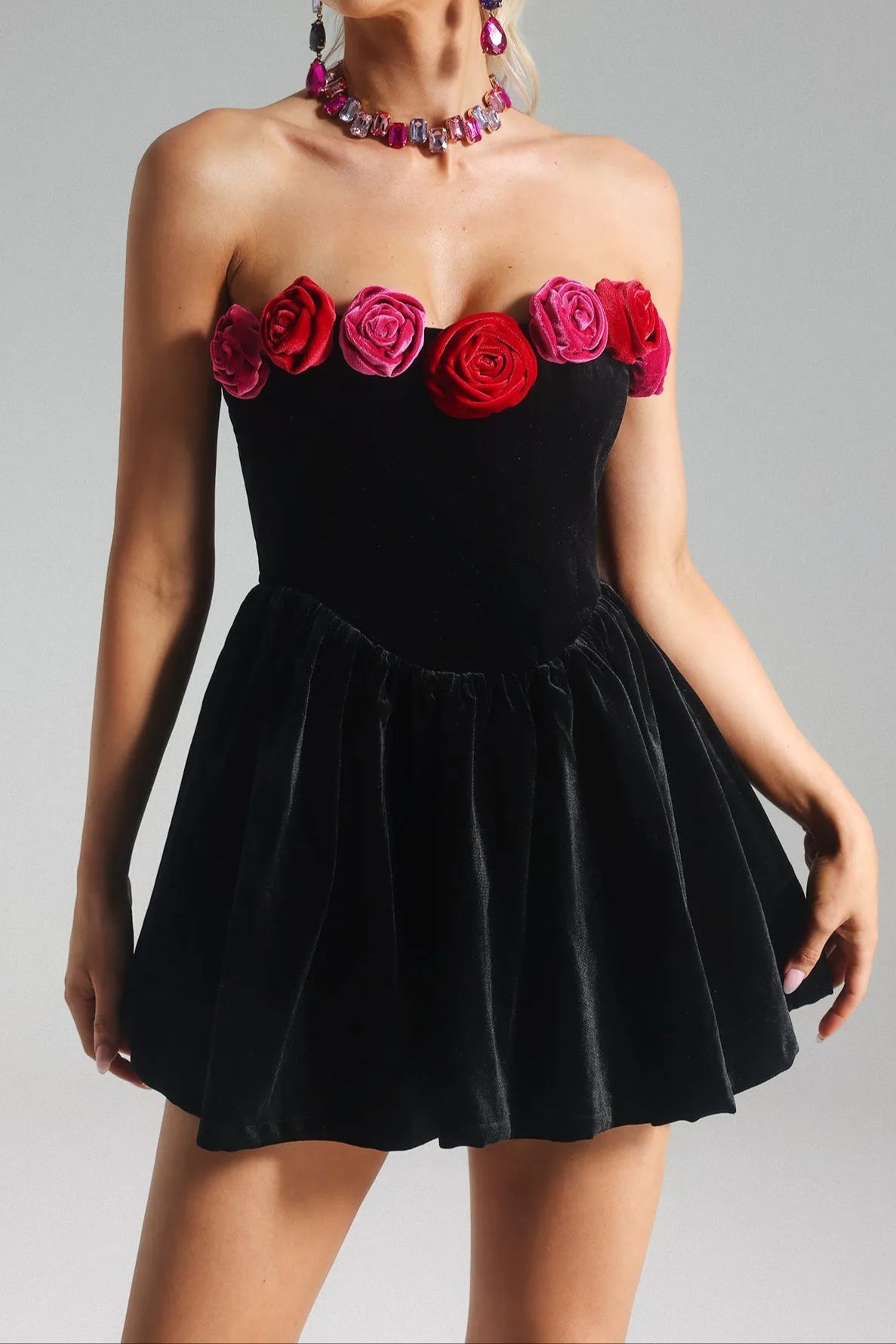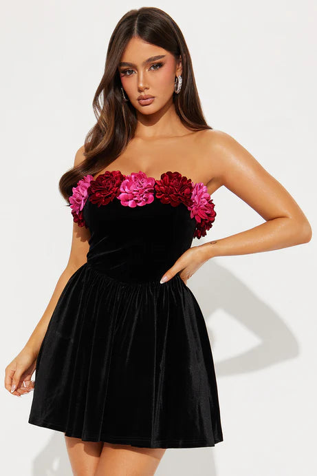 The delicate floral appliques add a touch of romance, while the off-shoulder design adds a trendy flair. This dress is perfect for any occasion, from brunch to date night. Elevate your wardrobe with this must-have piece.