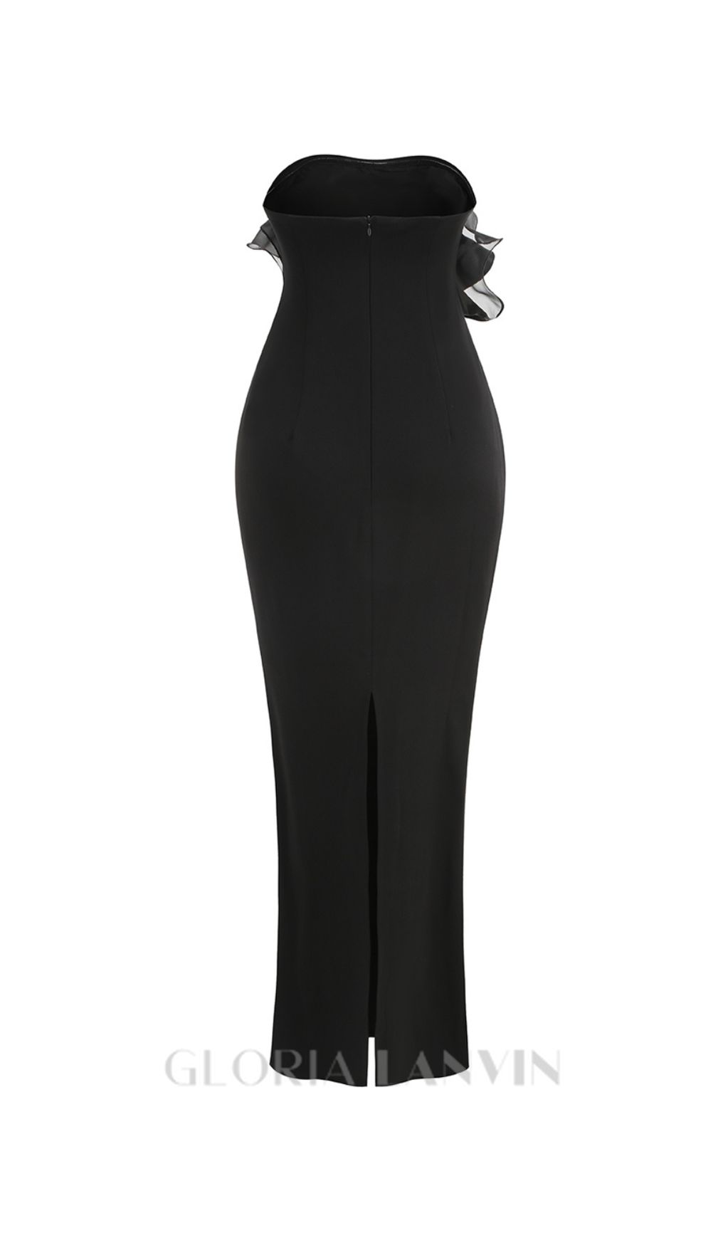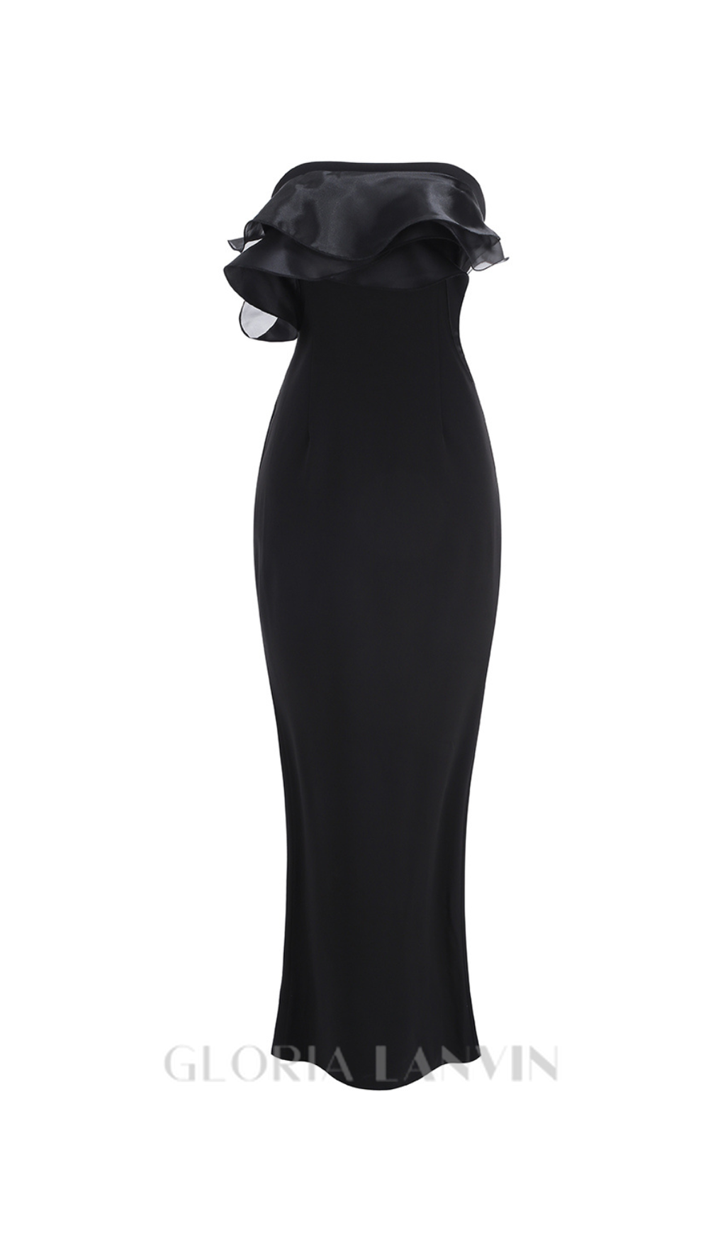 Perfect for any occasion, this dress will have you looking effortlessly chic. The off-shoulder design adds a flirty touch while the ruffle trim adds a playful twist. A must-have for any fashion-forward wardrobe!