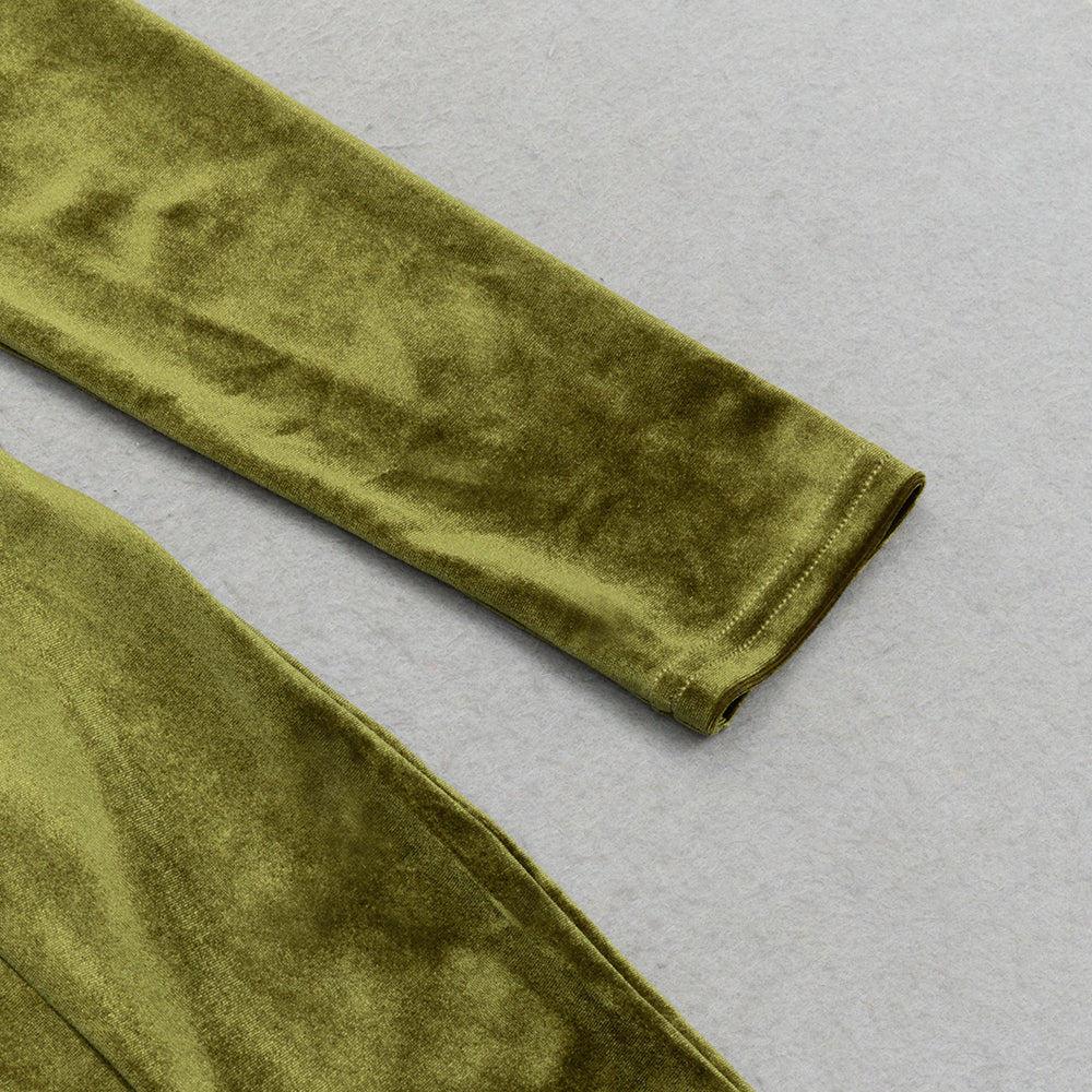OLIVE GREEN MESH VELVET SLIT HIP-HUGGING DRESS